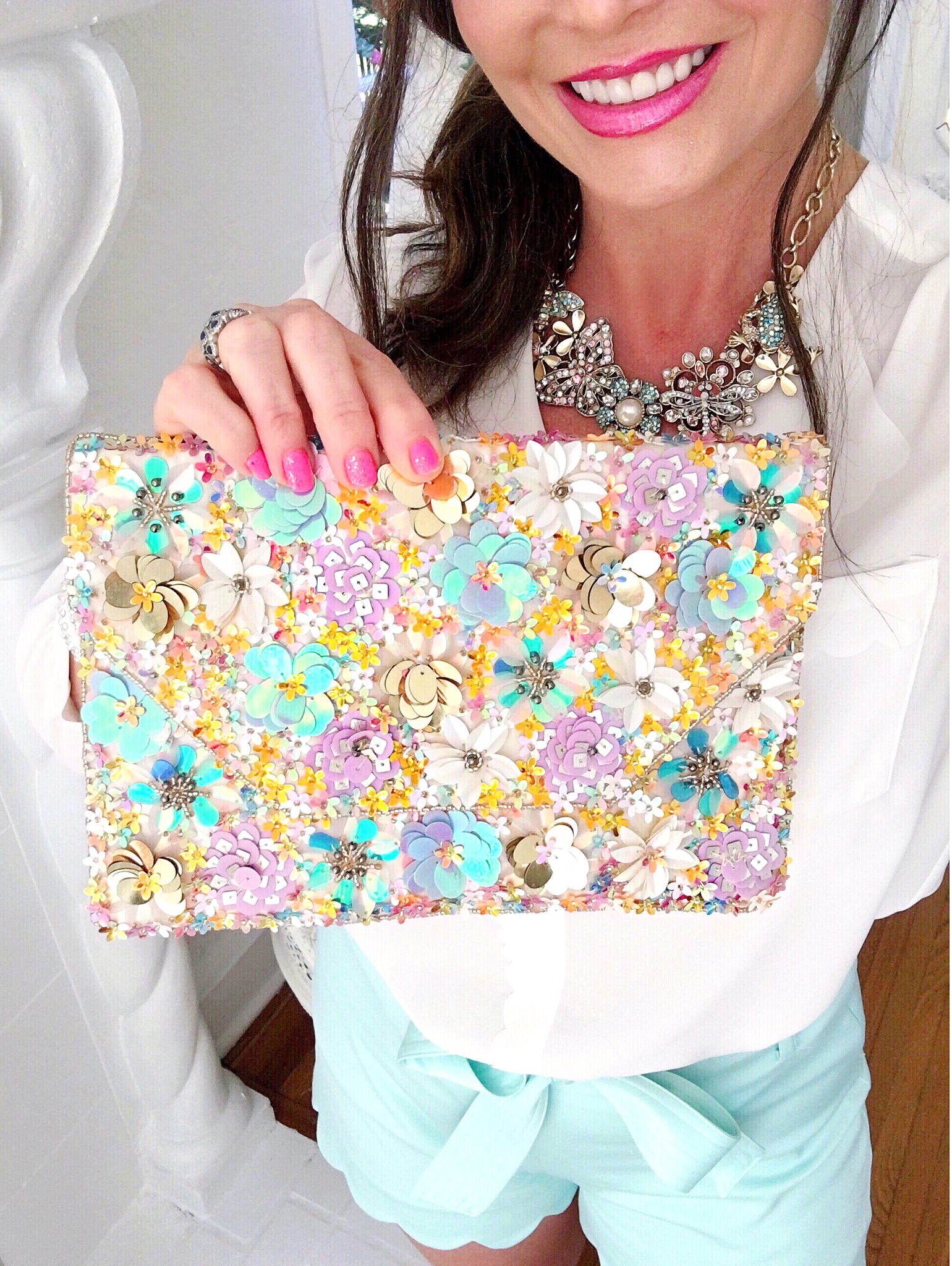 Lastly, I’m giving away this pretty sparkle floral clutch.