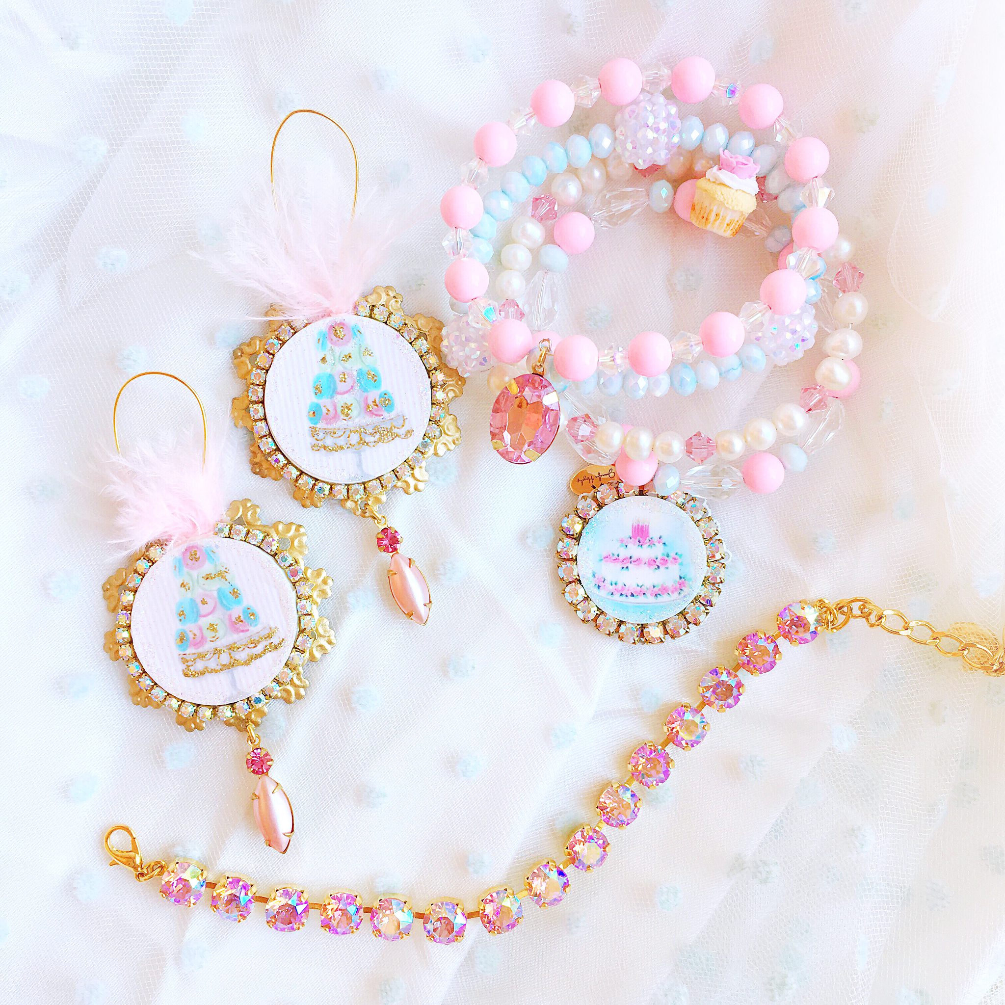 Handmade Birthday Cake arm candy bracelet,with an extra special bracelet I made that includes fifteen gorgeous Swarovski Light Rose Pink AB 8mm stones. Pictures don’t do it justice! They are gorgeous!