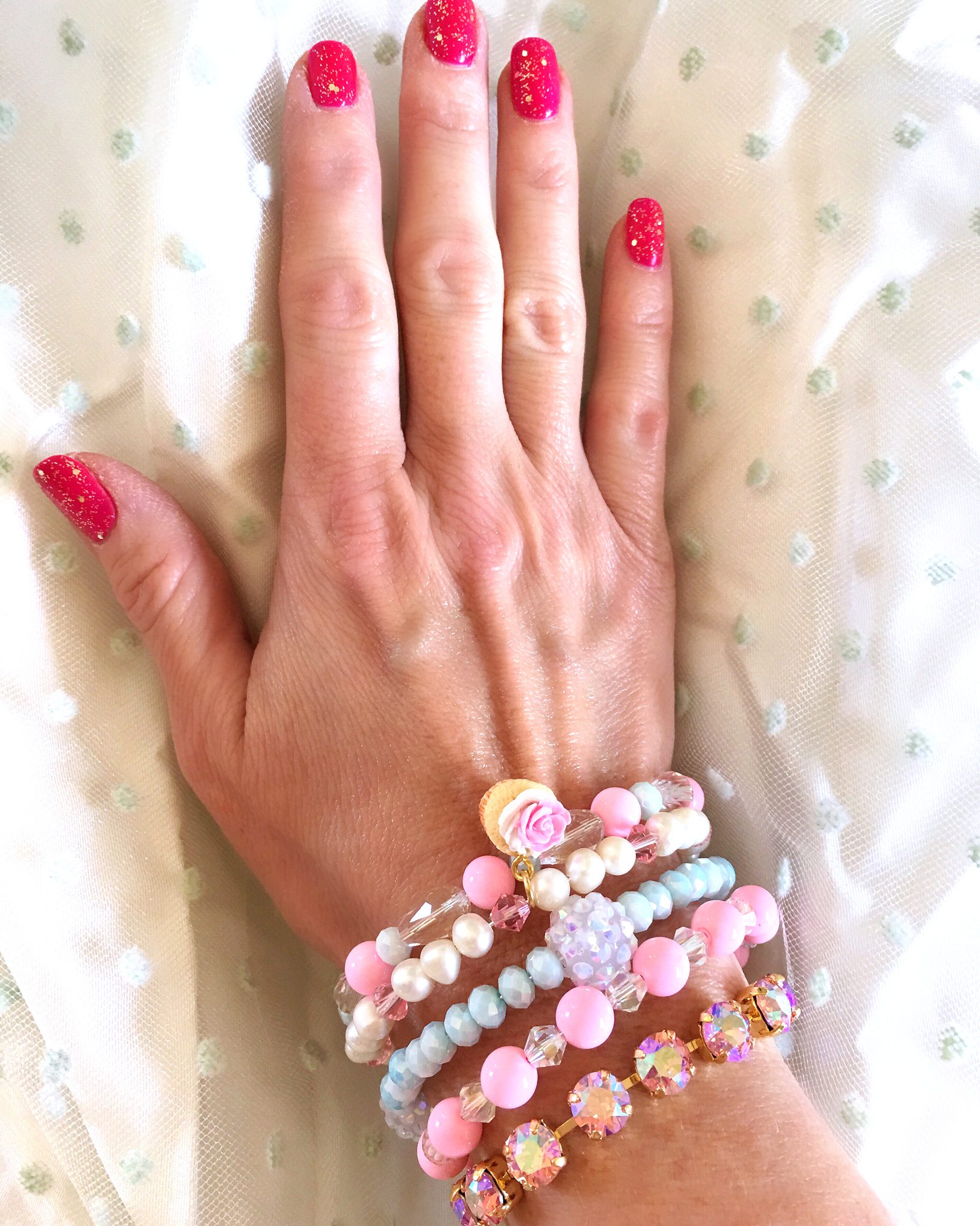 Handmade Birthday Cake arm candy bracelet,with an extra special bracelet I made that includes fifteen gorgeous Swarovski Light Rose Pink AB 8mm stones. Pictures don’t do it justice! They are gorgeous!