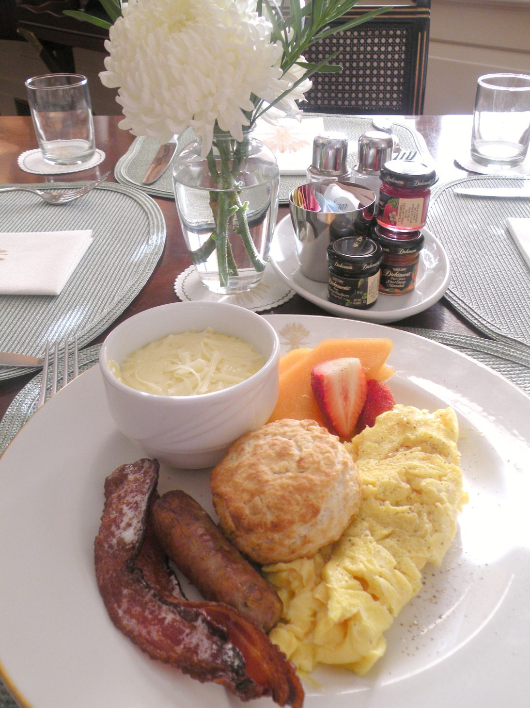 Friday morning while hubby played in the member golf tournament (which by the way…I MUST toot his horn!! HE WON!!!! Whoo-hoo!) I enjoyed having a yummy southern breakfast in the dining room.