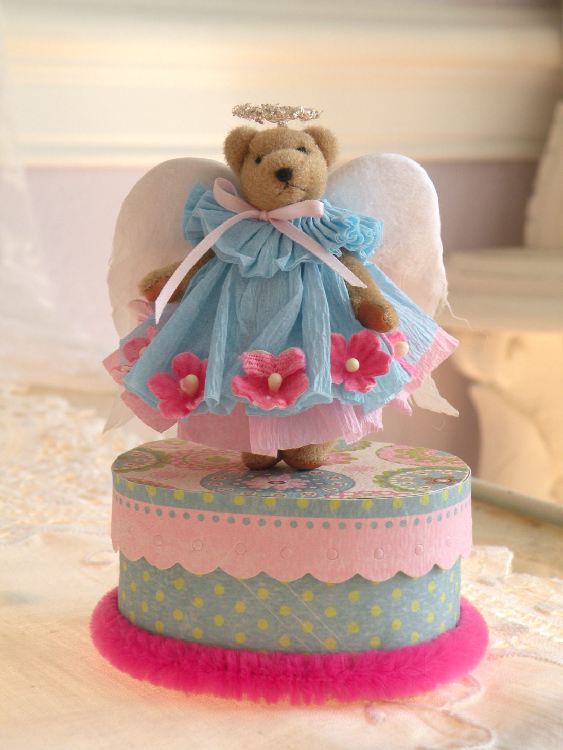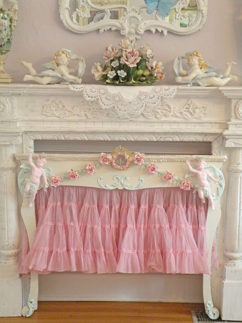 wow! your fireplace screen is so frothy perfect! love how you altered those cherubs! the whole thing is gorgeous. glad you like your little bear box too! have a great sunday