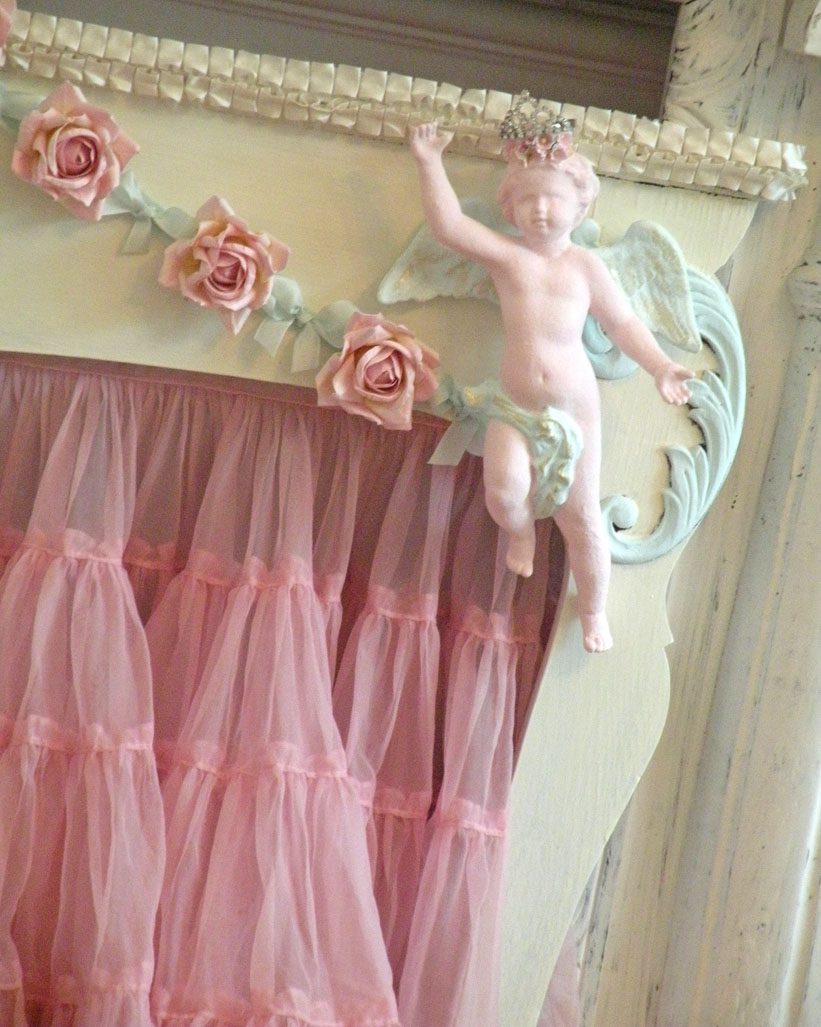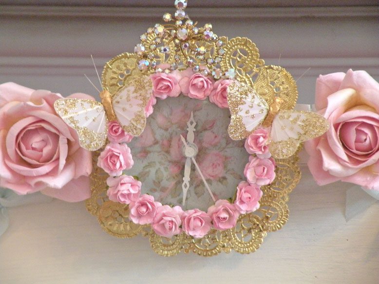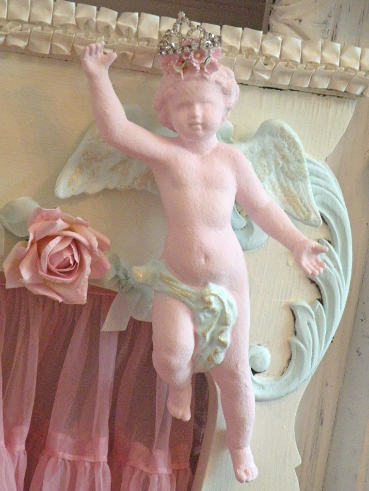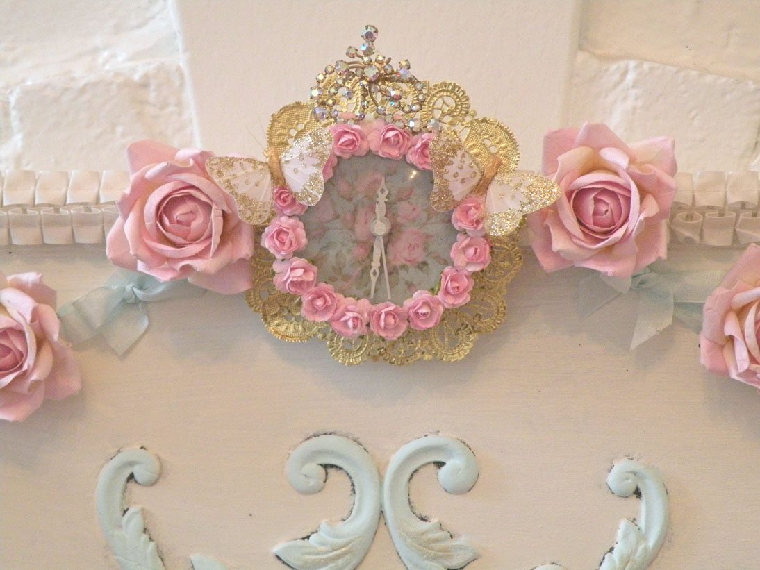 Between the cherubs is a garland of ribbon and roses and an old clock that I "glamed up" as well.