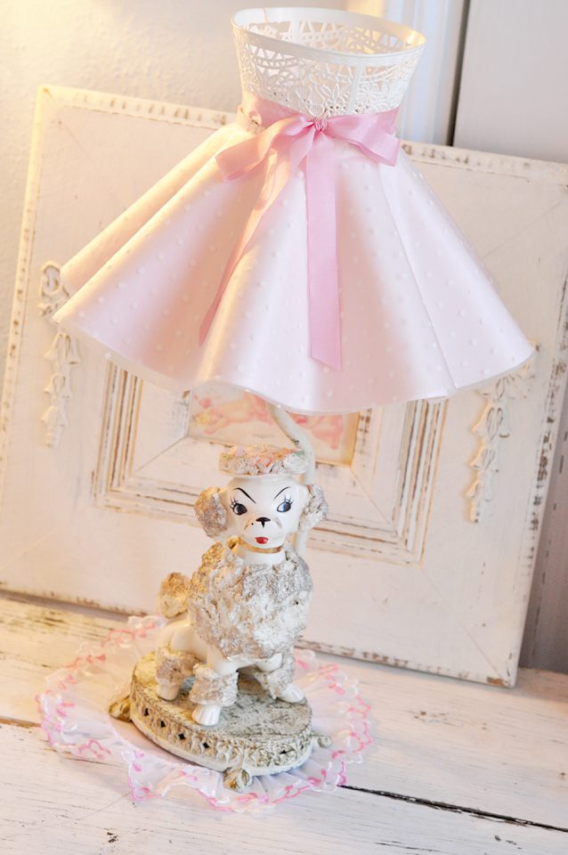 I found it at an antique store a few months back. I didn't care for the lamp shade so I found two pink swiss dot lampshades on Ebay to replace it with.