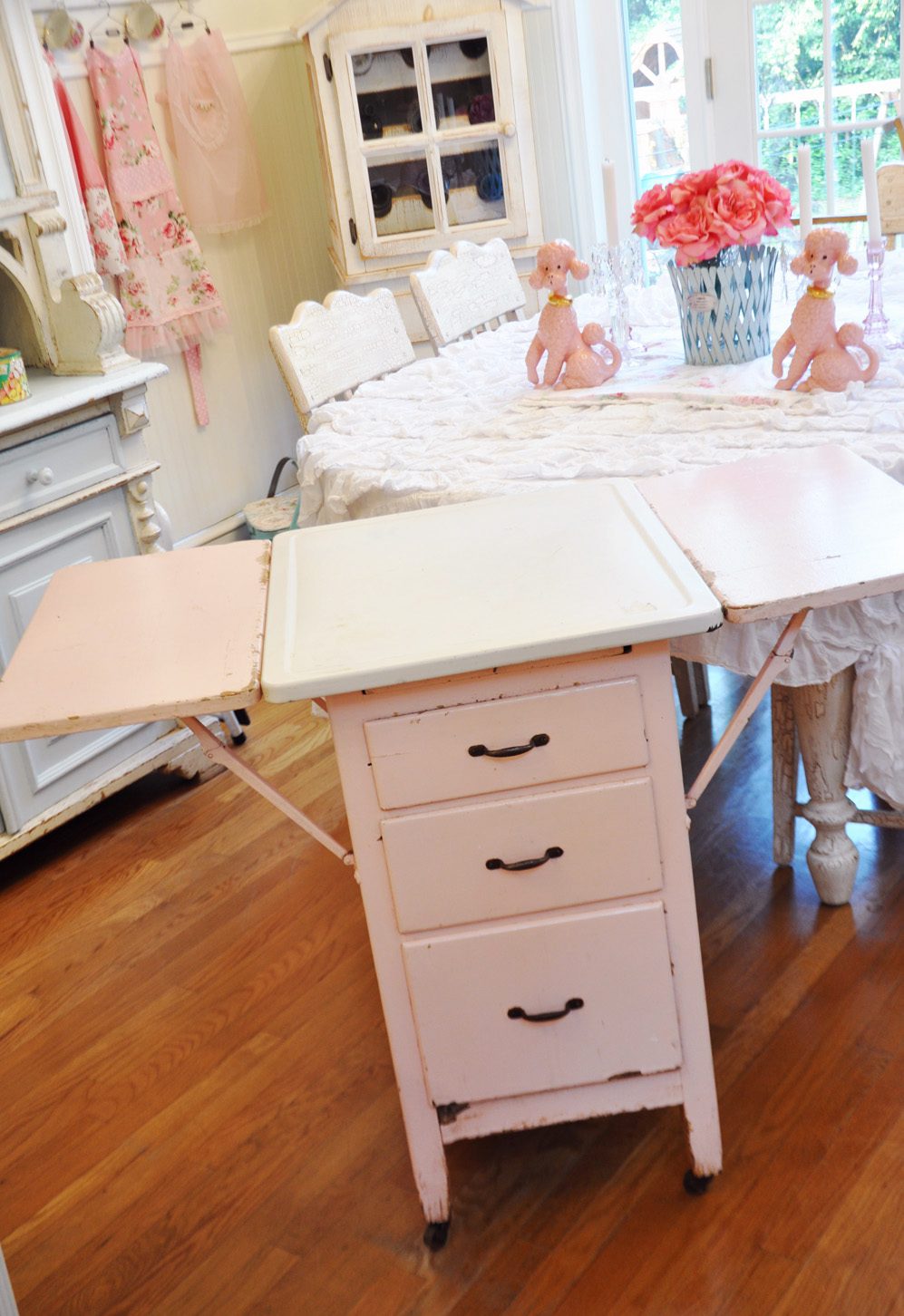 A few months ago when my friend Lori Oles was in town we visited an antique store where I found this terrifc pink pie storage cabinet. It was the prettiest pale pink color.