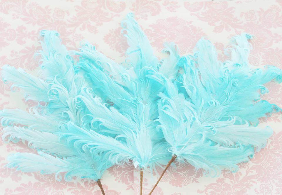 My last show & tell fabulous find are these gorgeous aqua curly feathers from Micheals craft store.