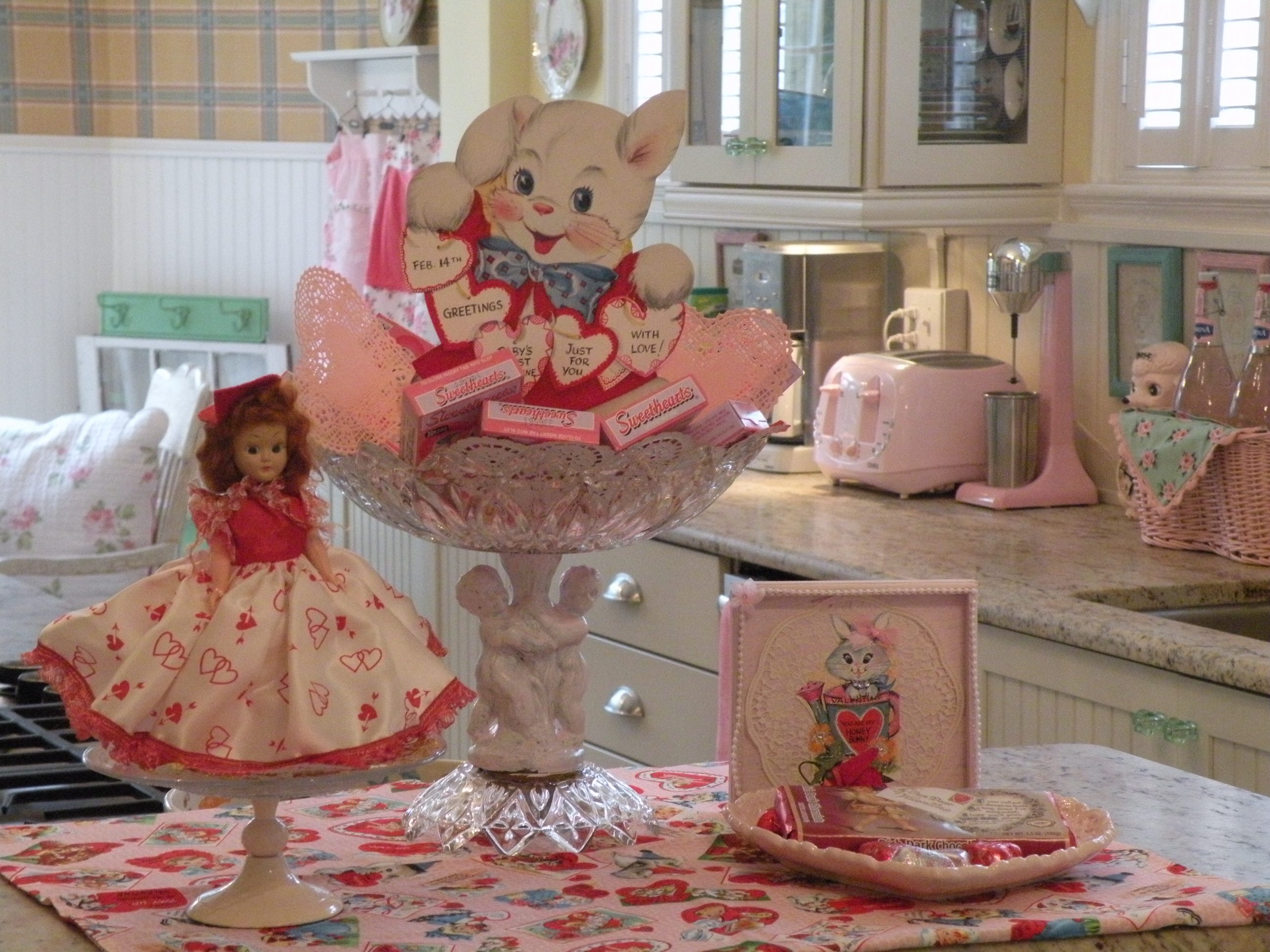 Beautiful decorations and dolls. It seems like your house would be THE place to be on Valentine’s day! Have a very happy day and I’m with you on the take out. A chance to relax is such a great gift!