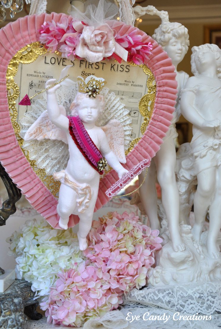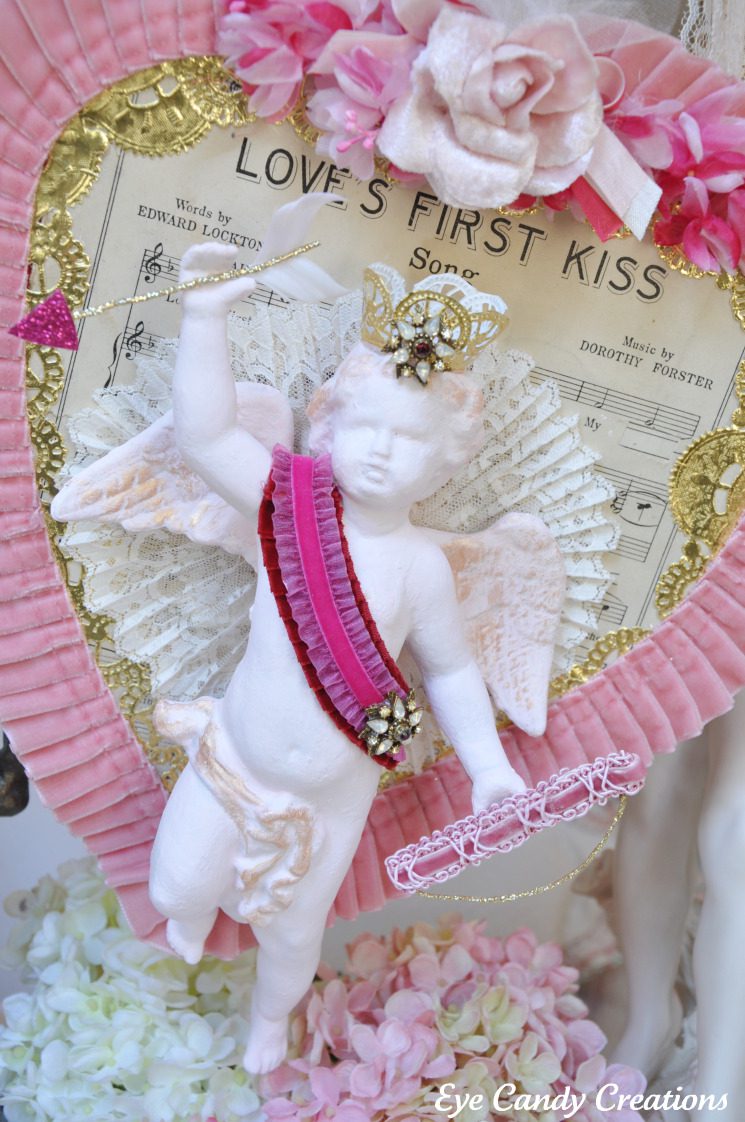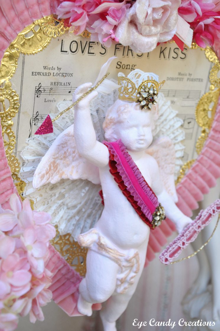 The cherub was a Christmas ornament that I purchased at Hobby Lobby. He was bronzy gold and he soon got a quick makeover into a pale pink Master of Love.
