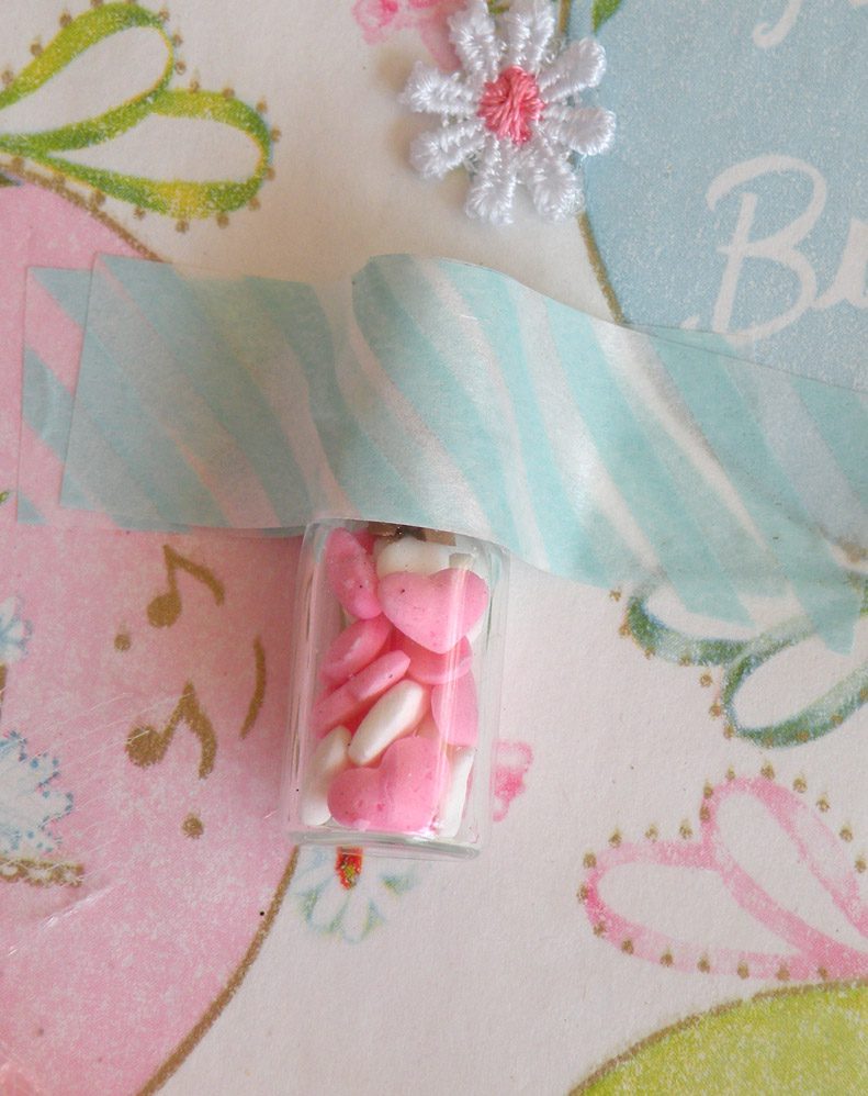 Add a few mini glass vile containers filled with candy sprinkles for a fun and festive touch.