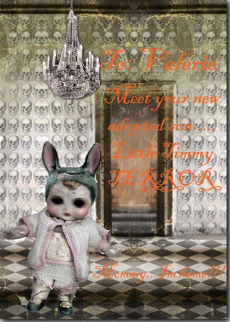 I am so lovin the ‘T’ that you received. Your friends really have you pegged!! Your swap ‘Timmy’ is perfectly eerie and I know your swap buddies will be thrilled!