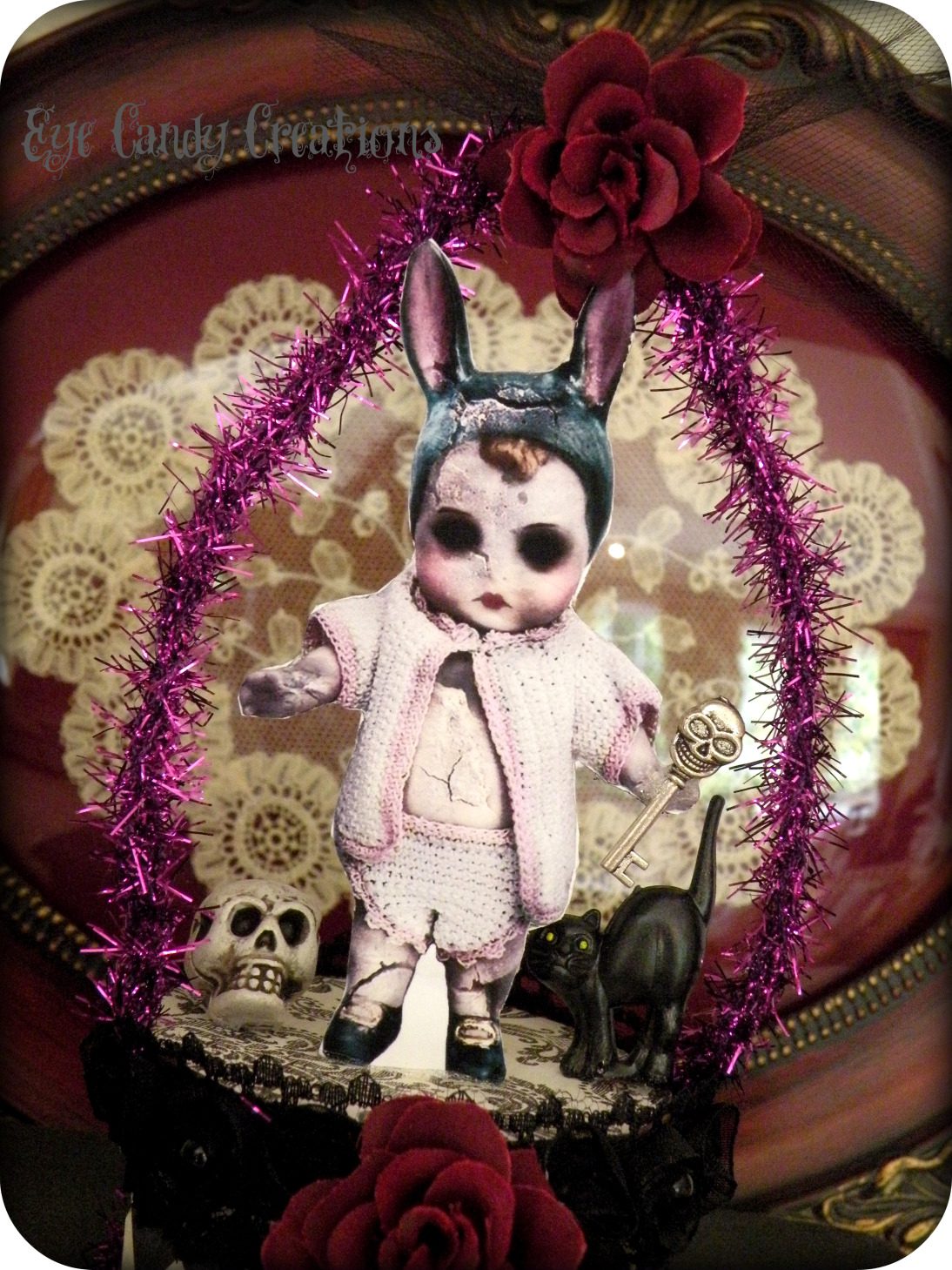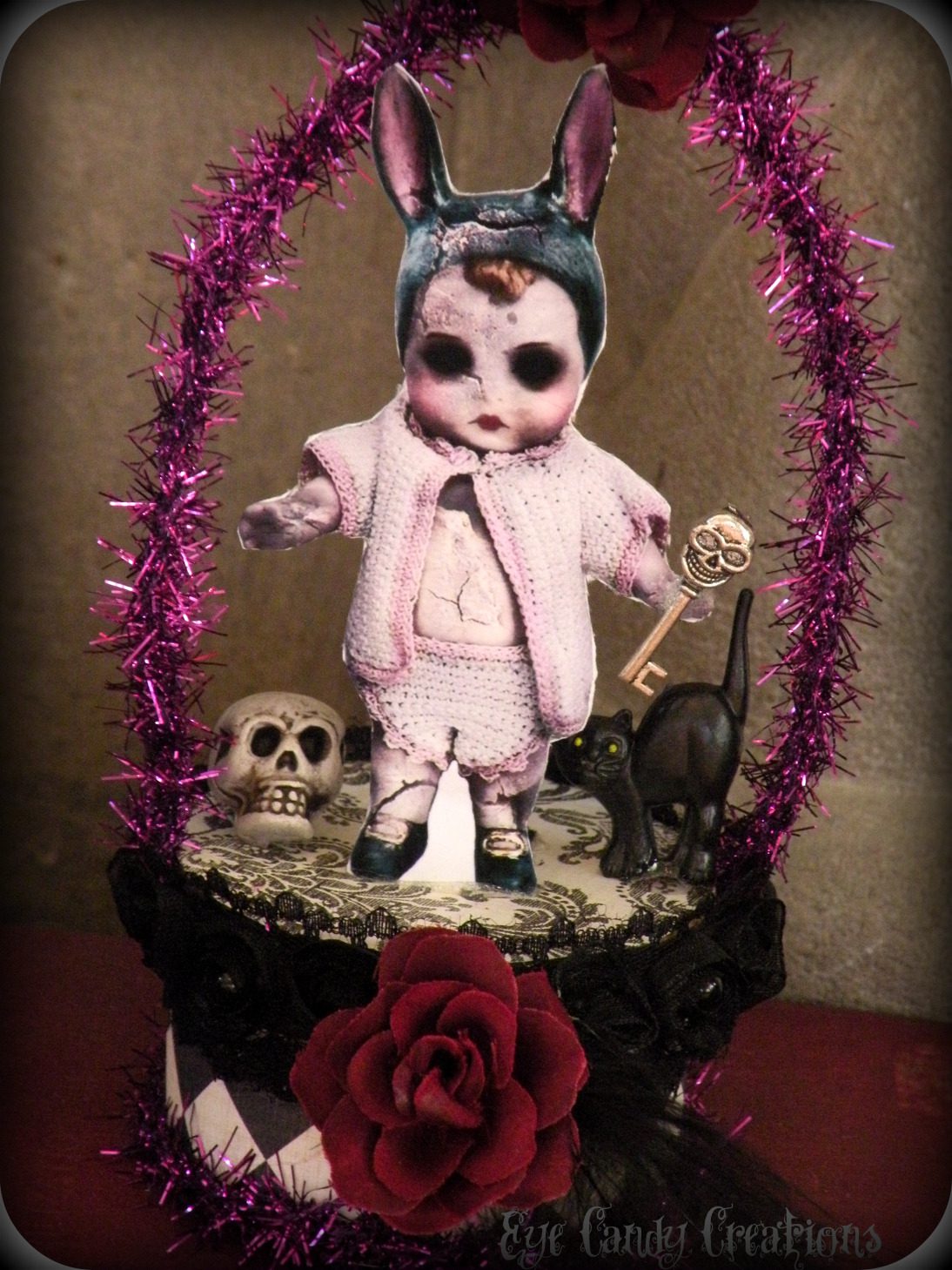 Poor little Timmy… someone’s plucked his little eyes out, bless his heart!! He’s as cute as a little undead zombie baby can be! I will be checking out those socks at Steinmart as I too get chilly feet!! I guess it’s our refusal to lay down wall to wall carpeting in these old houses that makes us suffer so!! Hope you have an awesome time in L.A. with all the girls!