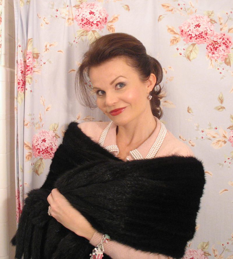Ok, this long post is ABOUT to come to an end! WHEW! However, I have to show off my fabulously (if that’s even a word) luxurious birthday gift from my SUPER SWEET hubby. Here I am trying to "strike a glamourous retro pose" in my black mink fur wrap. Oooh it feels soo divine!
