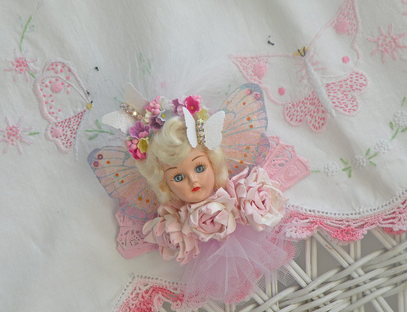 This magical garden beauty is Miss Madame Butterfly. She is a brooch that can be pinned to a pillow, lampshade, jacket, tote, whatever your little heart desires!