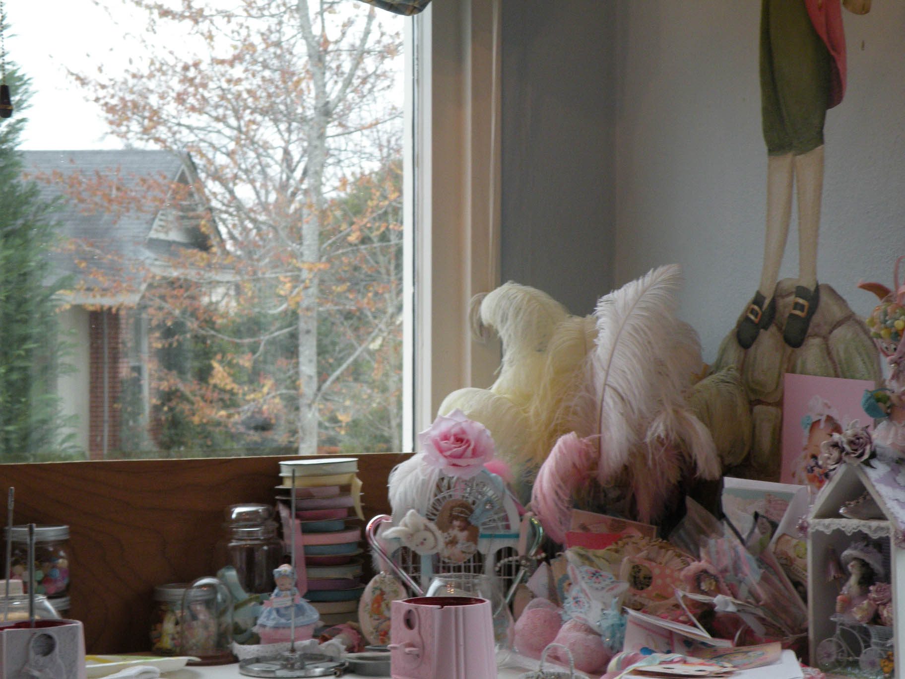 I love your happy messy spot. I noticed some pretty pink Ostrich feathers in the corner. Where did you get those amazing feathers in pink? I love them.