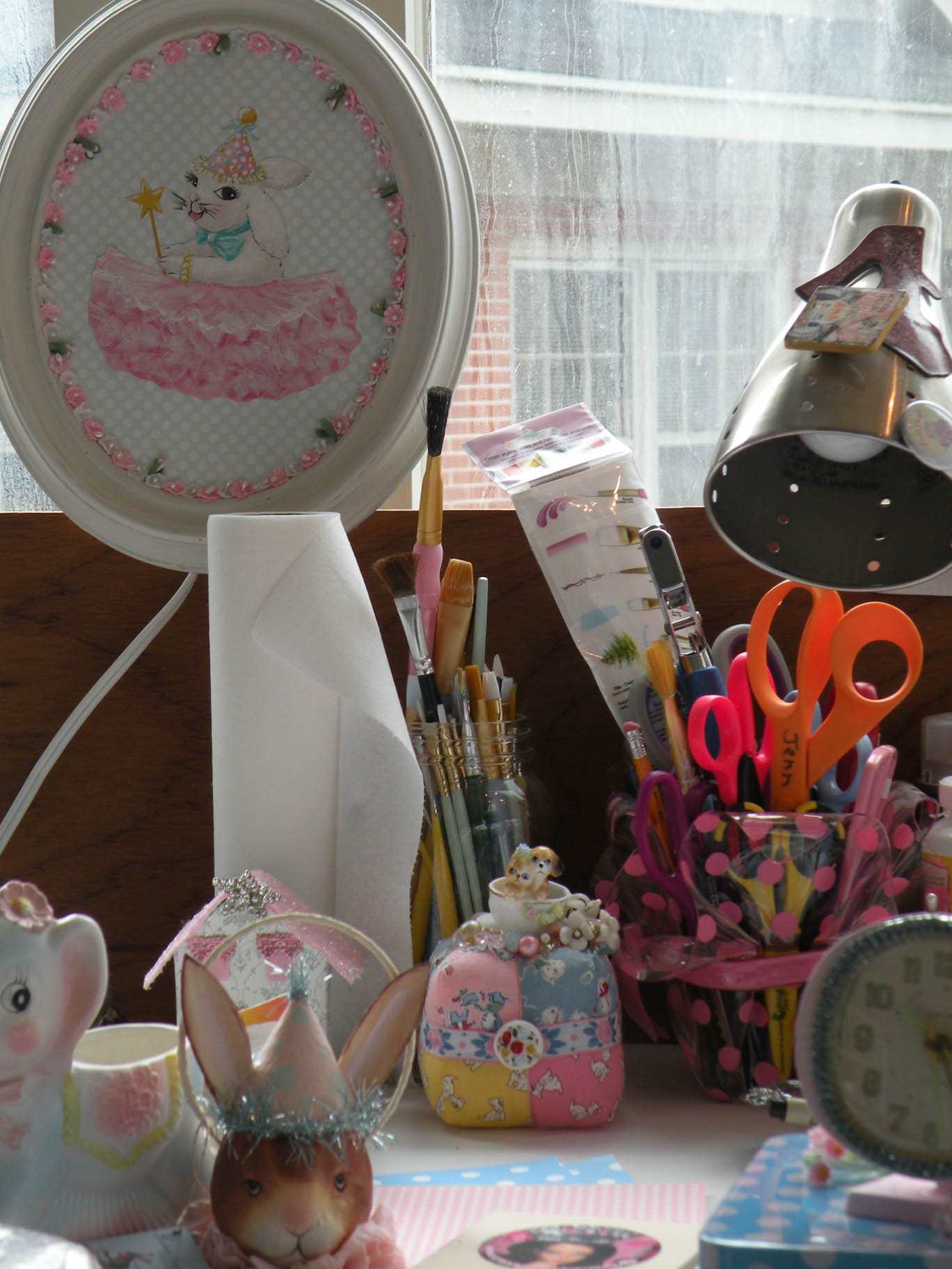 Hi Jenn your little corner mess is so beautiful, I love all your pink treasures in your studio, being messy is being very creative and with a happy heart.