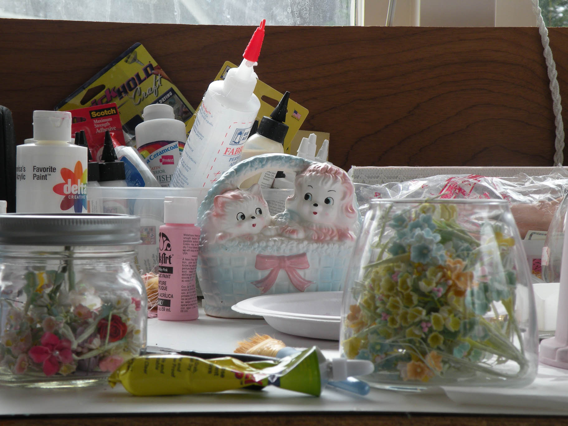 Thanks for sharing your workspace…you are so creative and talented. I bought some ceramic angels…the awful dark gold ones but I thought I could paint them white and Jenn them up a bit but I’m not sure what kind of paint to use. What do you suggest? I’m a total dunce at craft.
