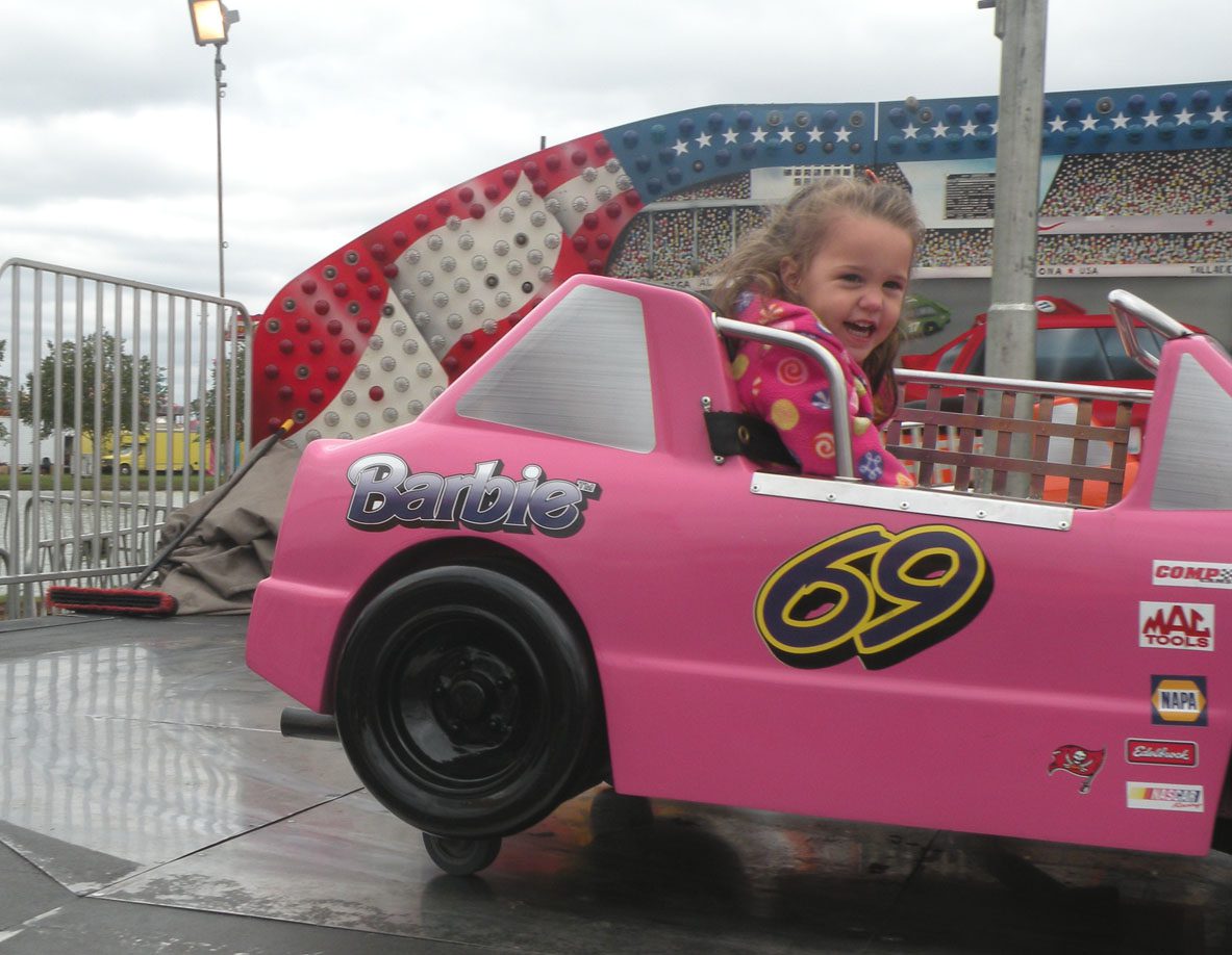 Lastly, I have a funny picture of the week I would like to share. We took the kiddies to the State fair this weekend (now that they are ALL better after having the flu! Whew!) Grant and Vivi both rode the mini Nascars.