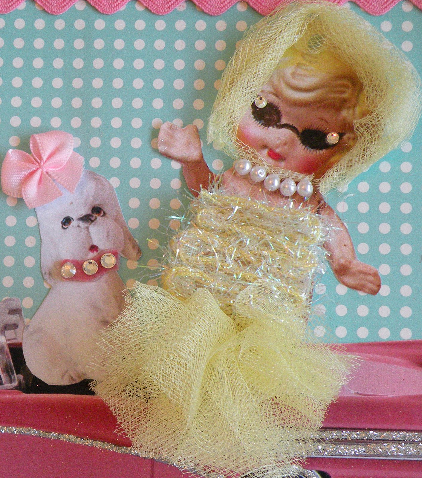All that pink goodness! Happy Bogiversary! I just love the little rhinestones on the corners of her horn-rimmed glasses! too funny a detail!!