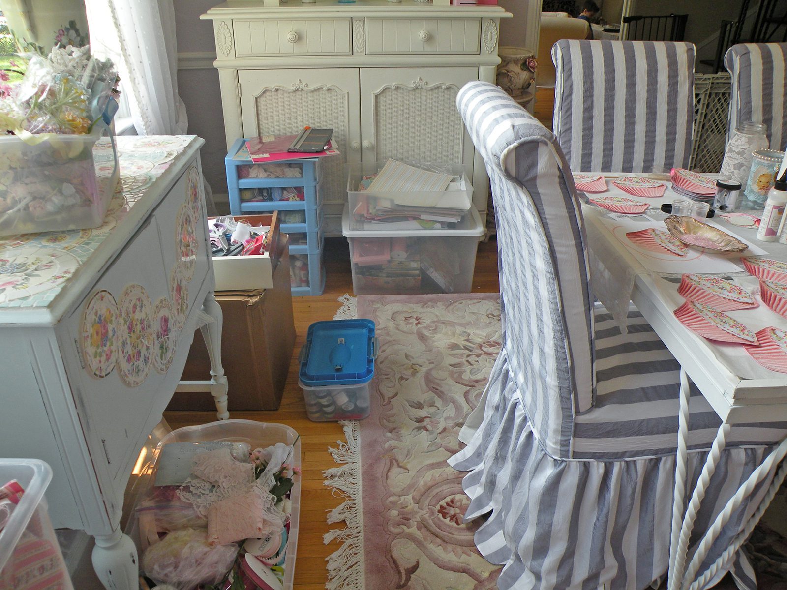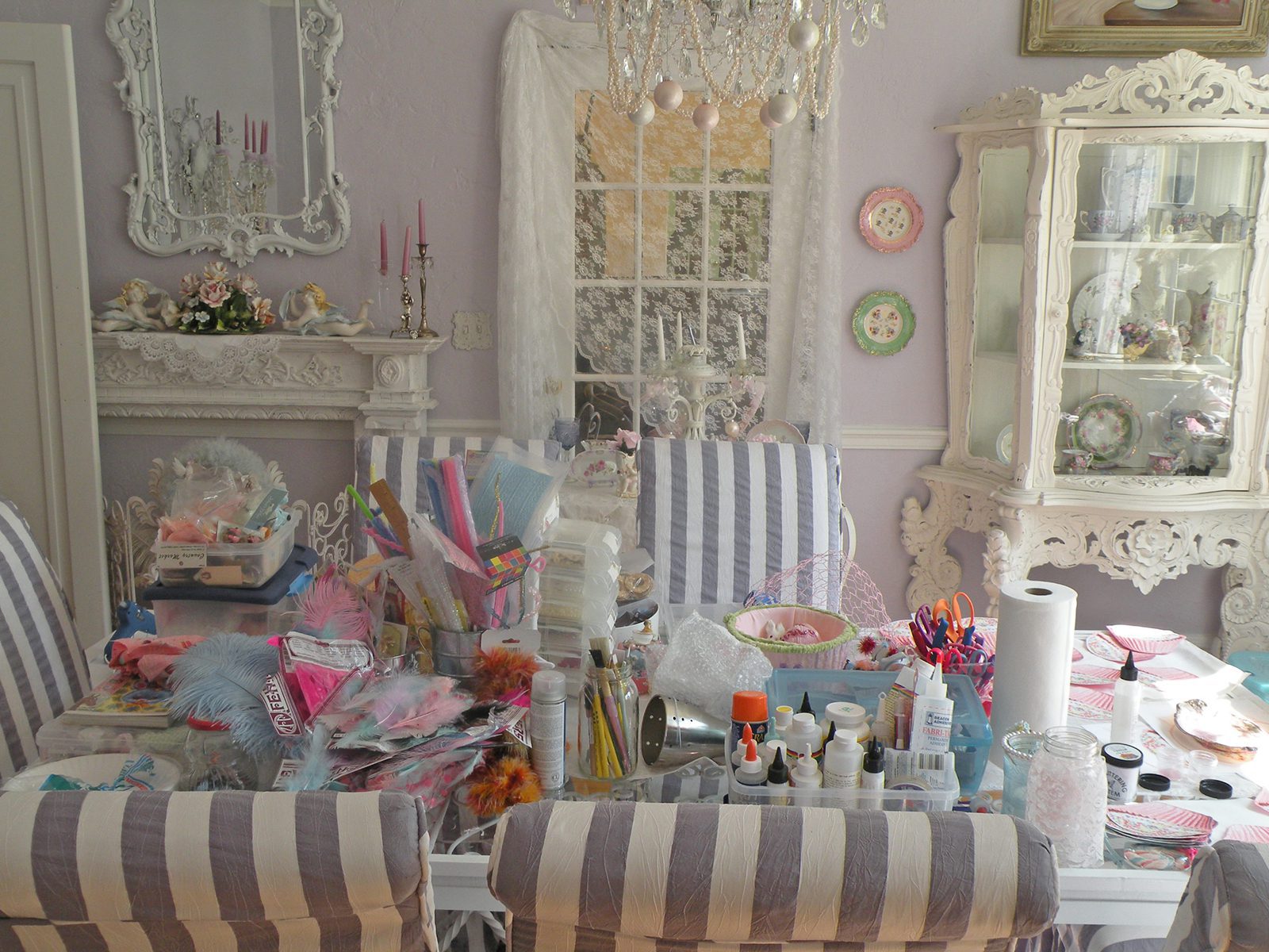 LOL, I love your dining room! My studio looks like that everyday. Sometimes I’m so embarrased when the UPS guy or mailman drops something off. I can just see in their faces an odd stare because it looks like a candy store exploded in my room!