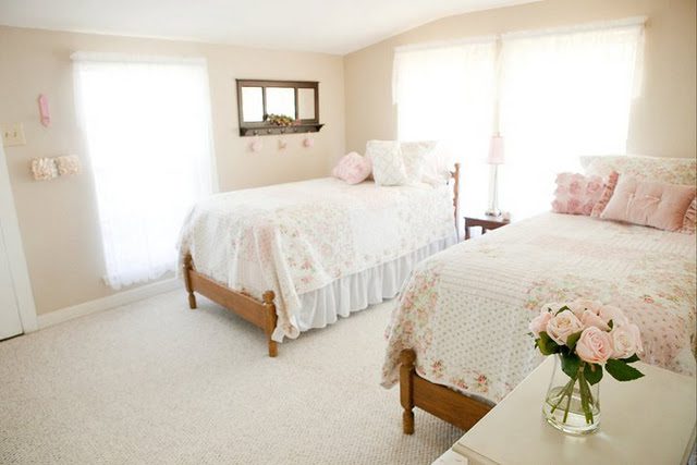 The ranch home was built in the late 1800's and the rooms are decorated in the prettiest soft shabby pale colors.