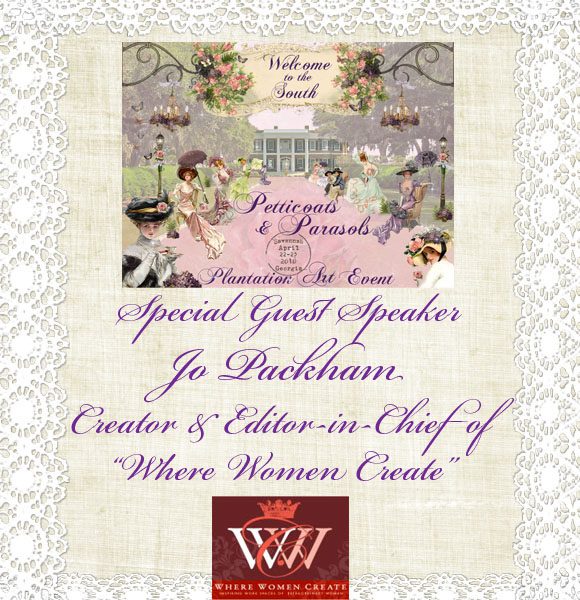 Yes! Jo Packham of Where Women Create will be the guest keynote speaker at Petticoats & Parasols.