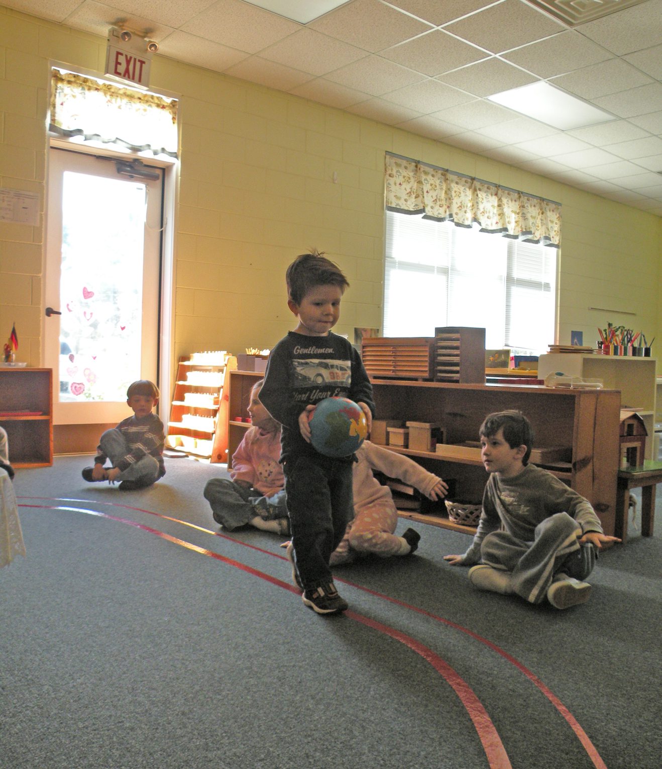 For Grant's 4th birthday this year we opted to take him for a long weekend to Disney instead of a traditional birthday party. Before we left for our trip his preschool had a little "Celebration of Life" in his honor. All the children gather and sit in a circle. Grant than holds a small globe and walks all around the circle and each circle represents a year of his life.