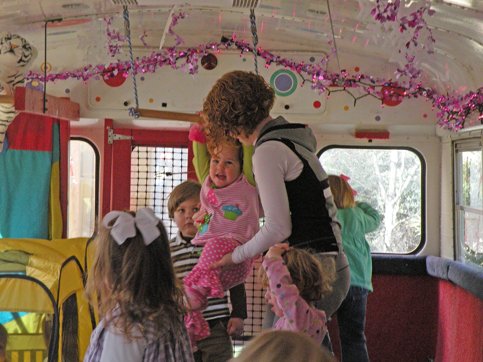 For Miss Vivian this year we decided to have the Tumblebus come and entertain all the children. The Tumblebus is a fun gymnasium inside the bus where the children bounce, tumble, dance, and play!