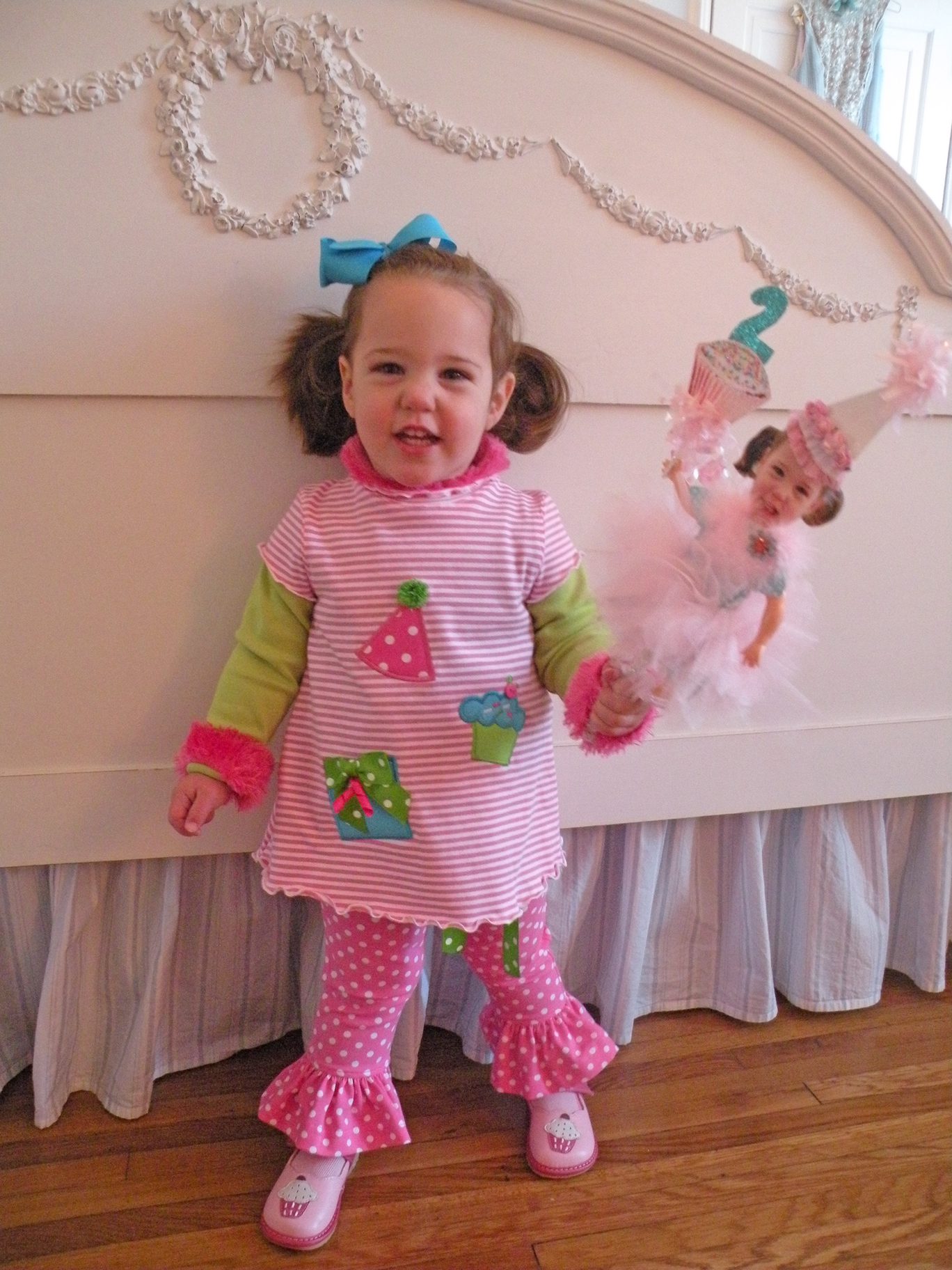 Finally this past weekend we celebrated Miss Vivian's 2nd year birthday. She's all "dolled up" ready to celebrate!