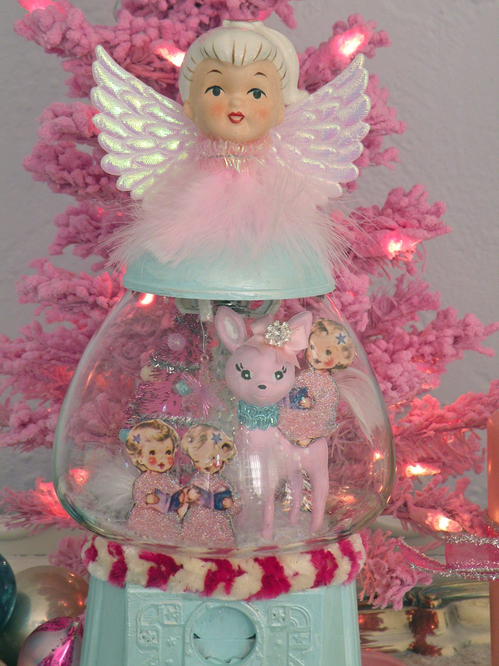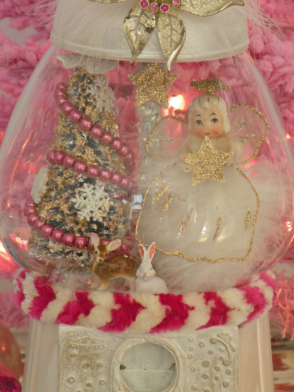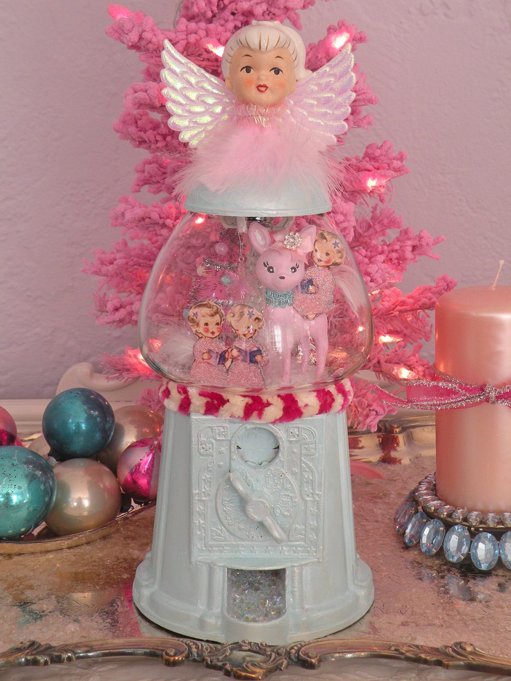 Well in my humble opinion. LOL!!! I have created Winter wonderland snowglobes that are made out of vintage gumball machines. Each one is very different from the other, but they still have the angel theme that I just cant seem to stay away from. These snowglobes would be SOOOO darling and UNIQUE displayed in your holiday home.