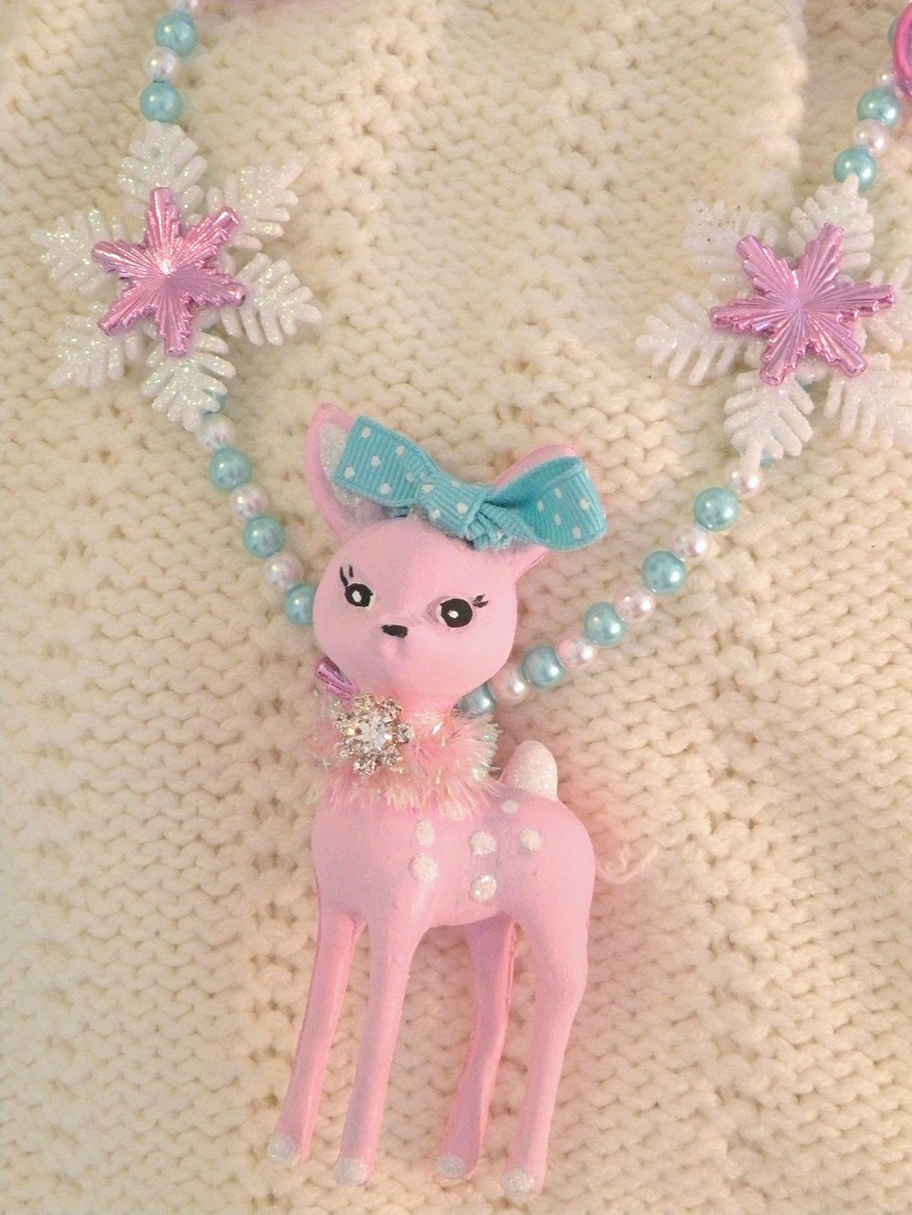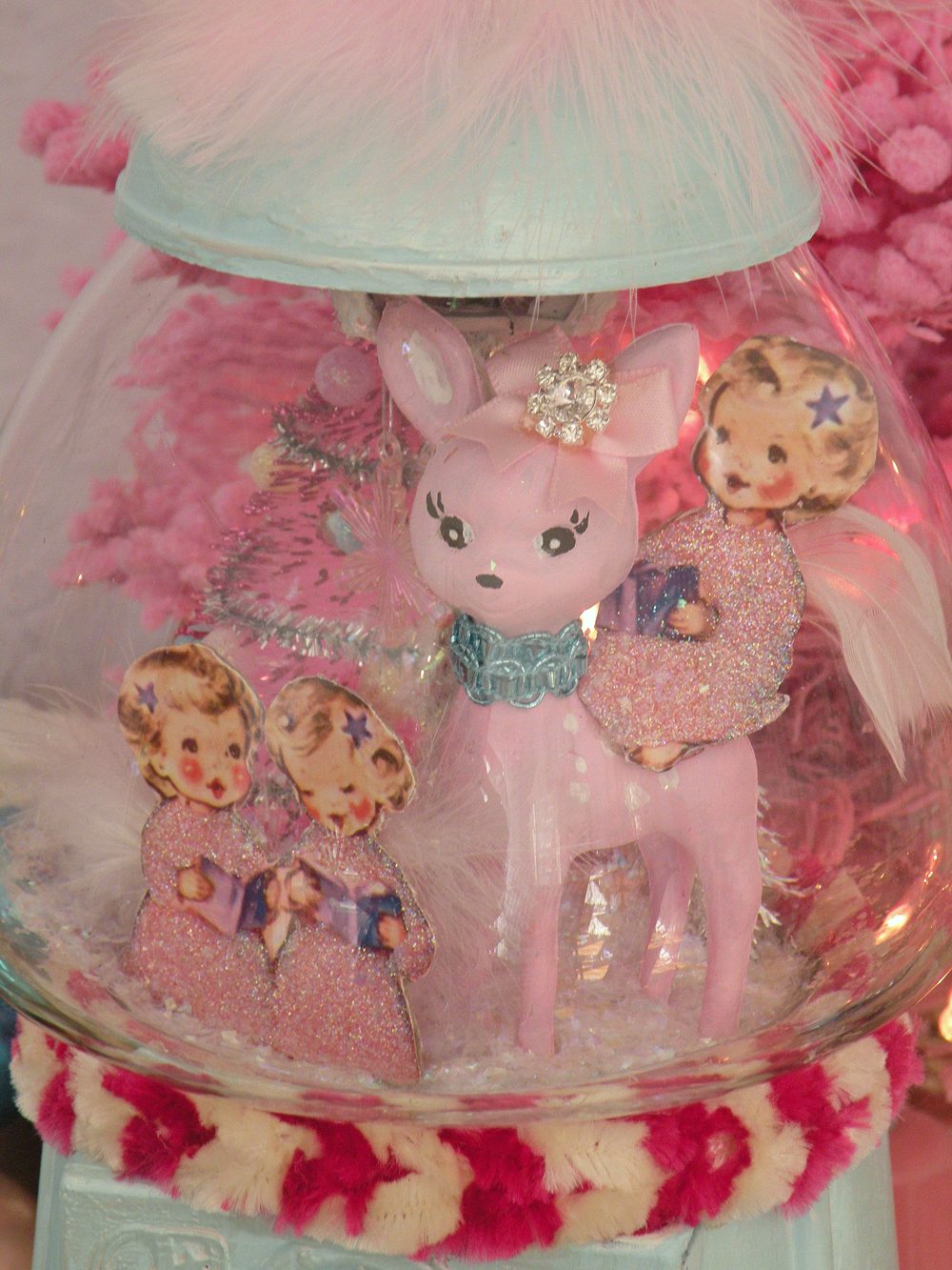 Hi Jenn… Such a Lovely post! I remain in awe of your seemingly endless talents… Everything is so pretty… I โฅ the Pink Deer necklace ~ some very lucky girl will be beaming as she wears it this Holiday Season! I was especially fond of your Gumball-Snow-Dome creations… they’re simply Enchanting, Jenn! I must say, when I saw the last one, with the sweet Angel inside, tears rolled down my cheeks… she is just like the Angel my Parents had on their first Christmas tree in 1948… though I’m not the new owner of that beautiful piece, I can still enjoy your photos and the warmth that comes to my heart in doing so… Thank You, Jenn, for sharing and for helping to spark a very dear memory to me… God bless…