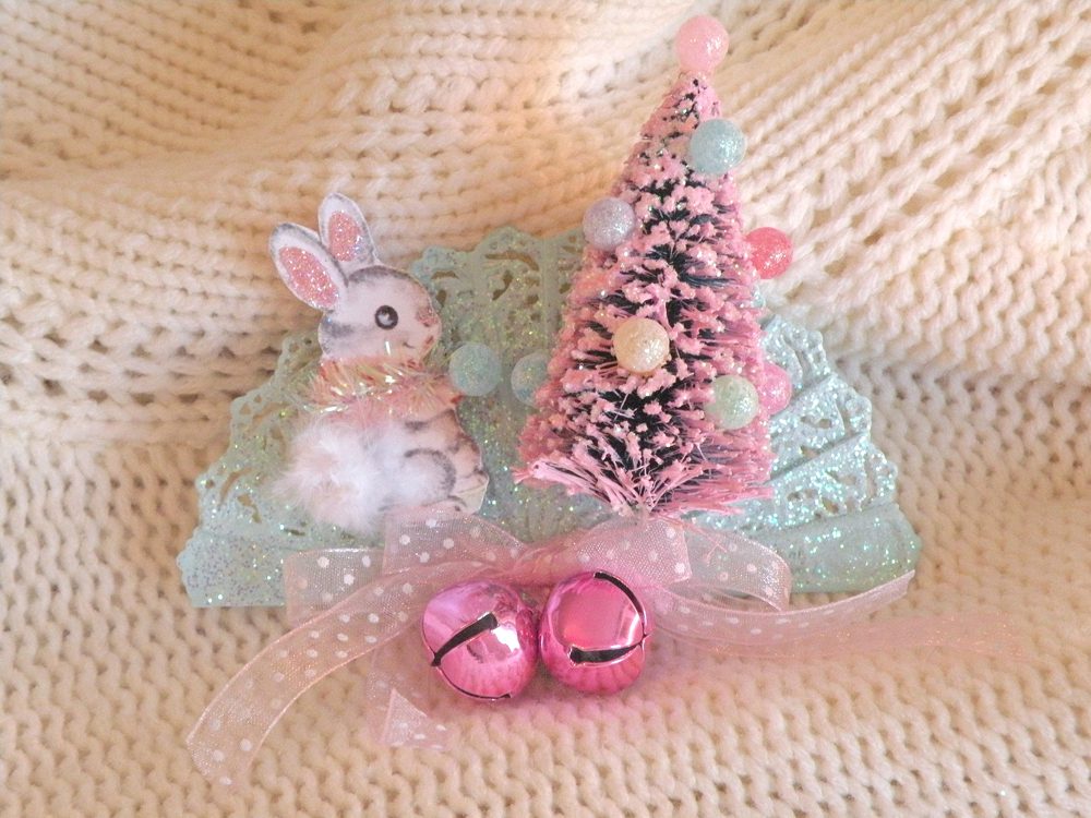 This first piece is my smaller piece which is titled "Christmas helper" . I made an ornament with the same angel and bunny last year, and loved it so much that I decided it would be darling in a snowglobe. The bottom has a thin layer of faux snow.