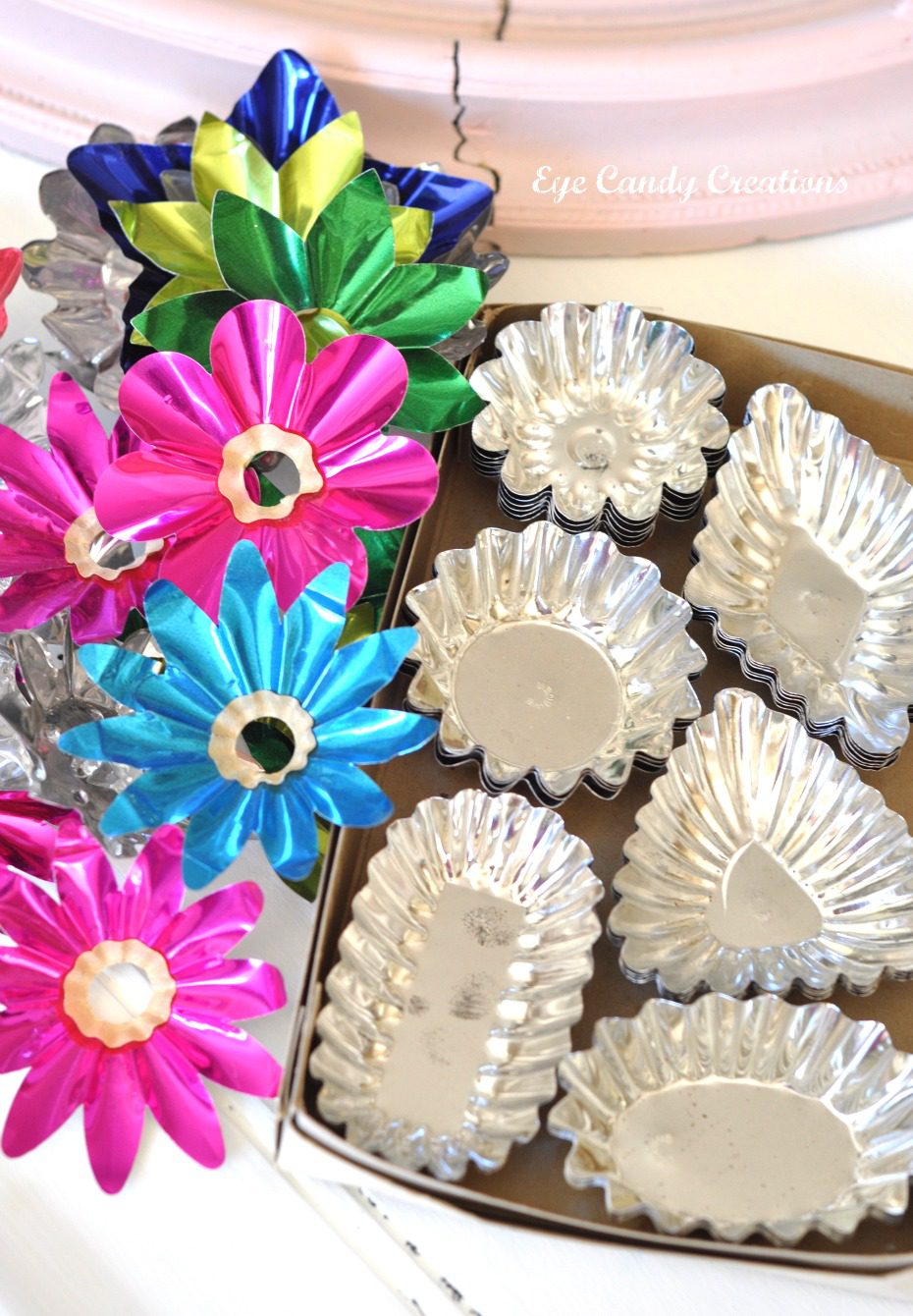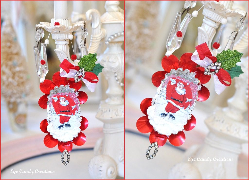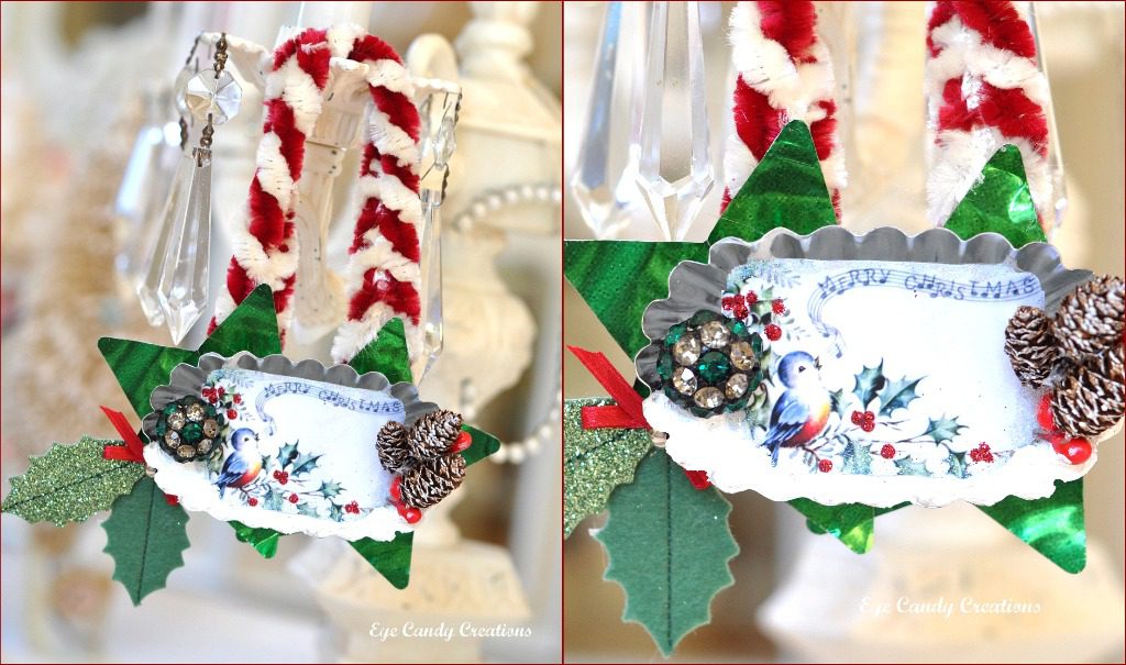 I tried something new and made a few ornaments using small vintage Christmas light reflectors and baking molds.