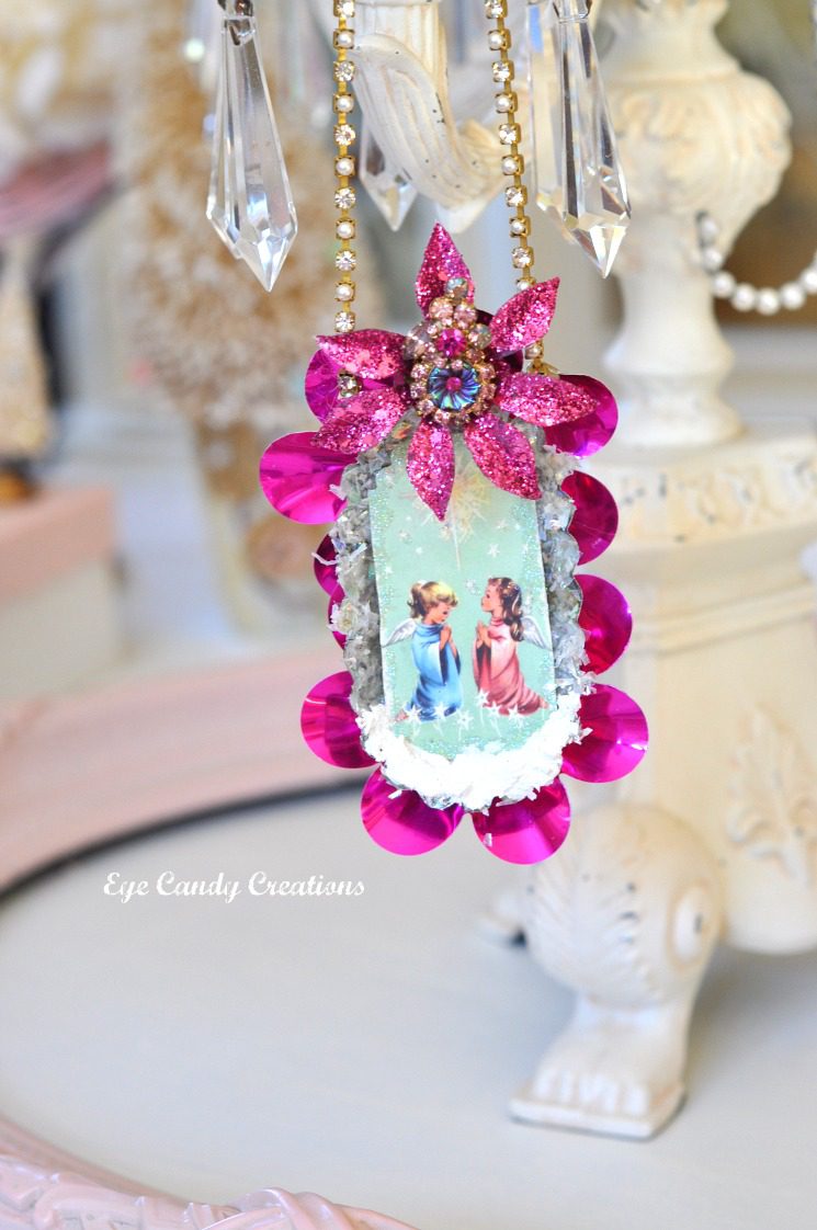 **Pure** magic, Miss Jenn! They are all so lovely….the gumball machines, ornaments and feathery angels!