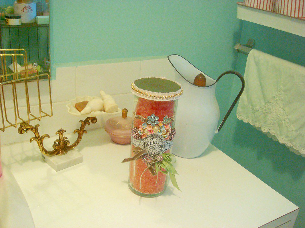 Oh my! The the bling and ribbons are just FAB!!! Come on gals you know you need to make one of these for your powder room. ๐