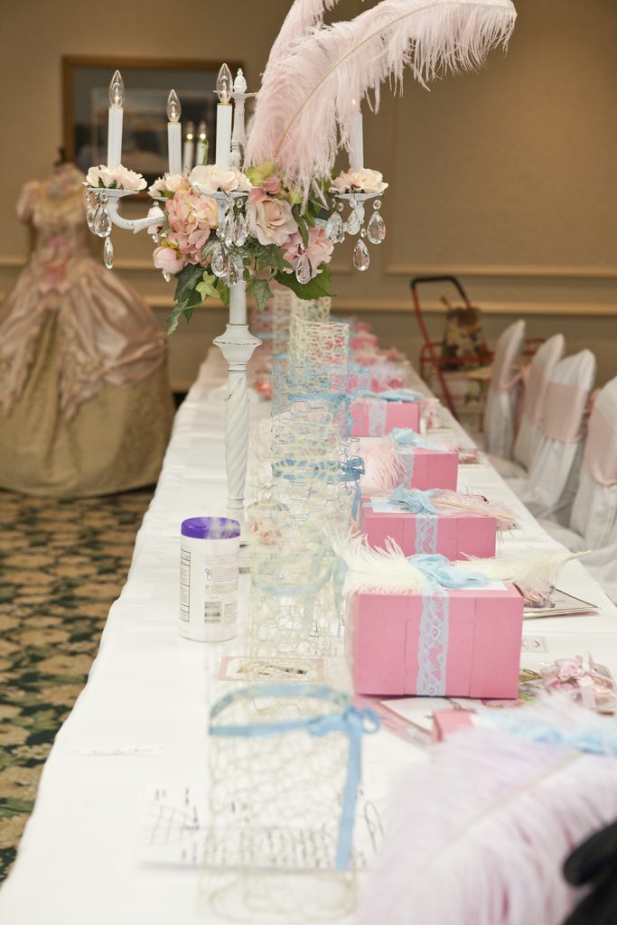 Tables were set beautifully with lighted candelabra's, sponsor goodies, and welcome packet.