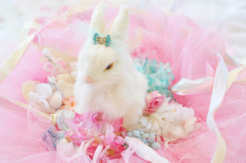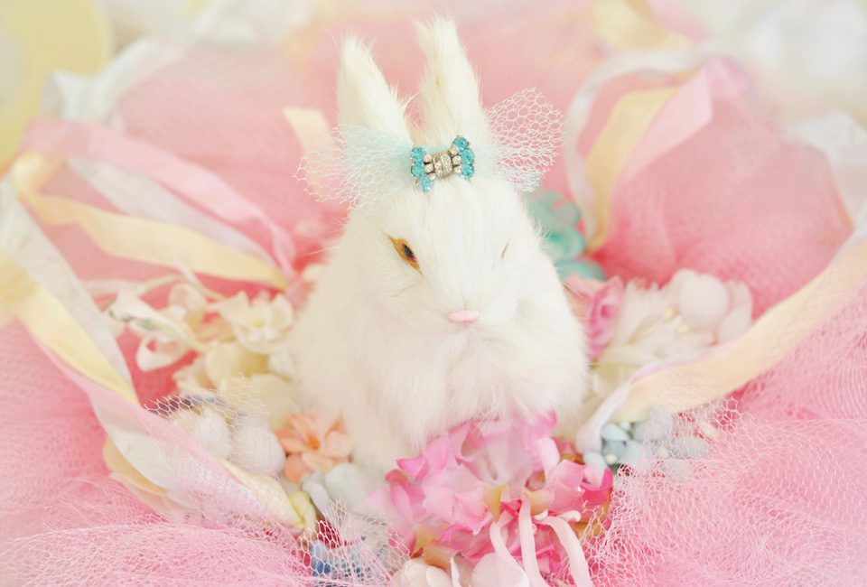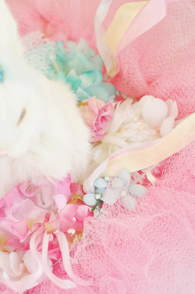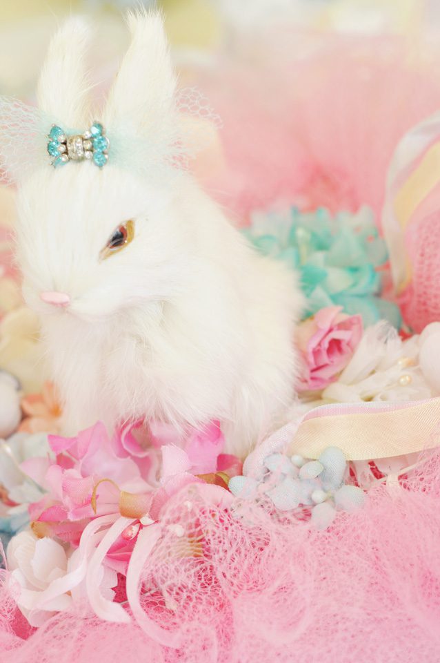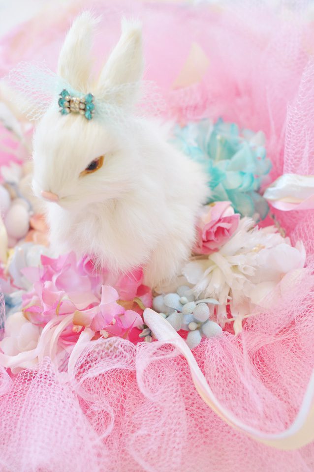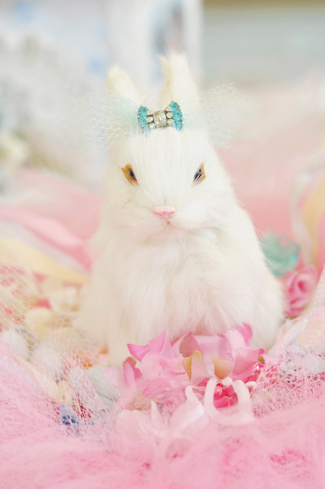 The images are darling but nothing can compare to Miss White Bunny nestled in a bed of vintage millinery.
