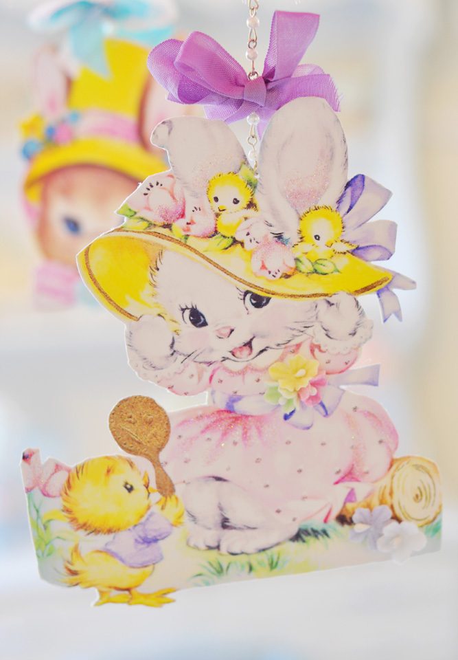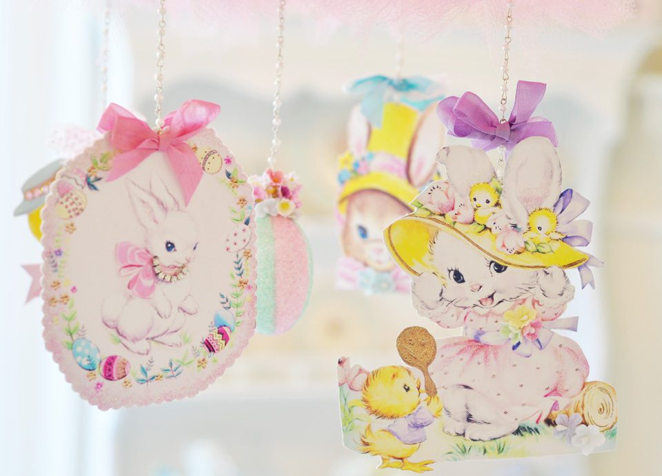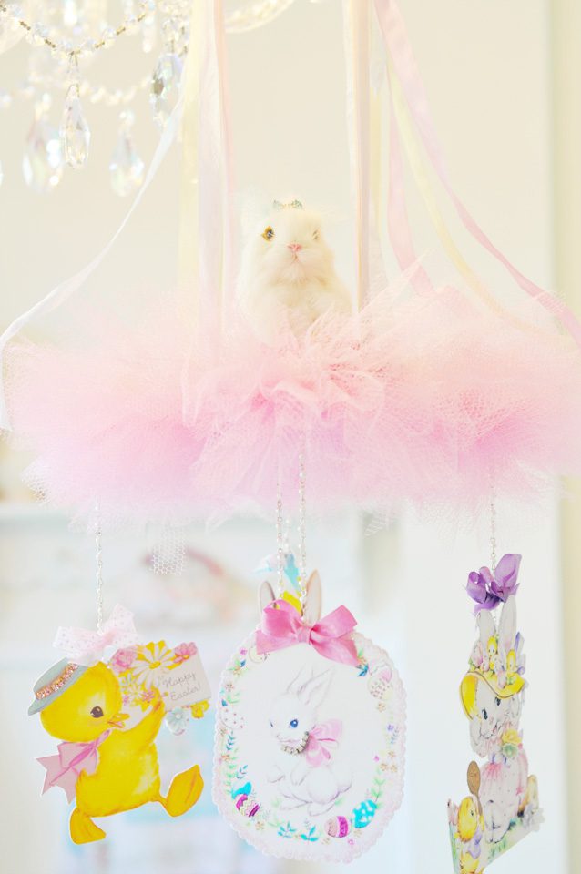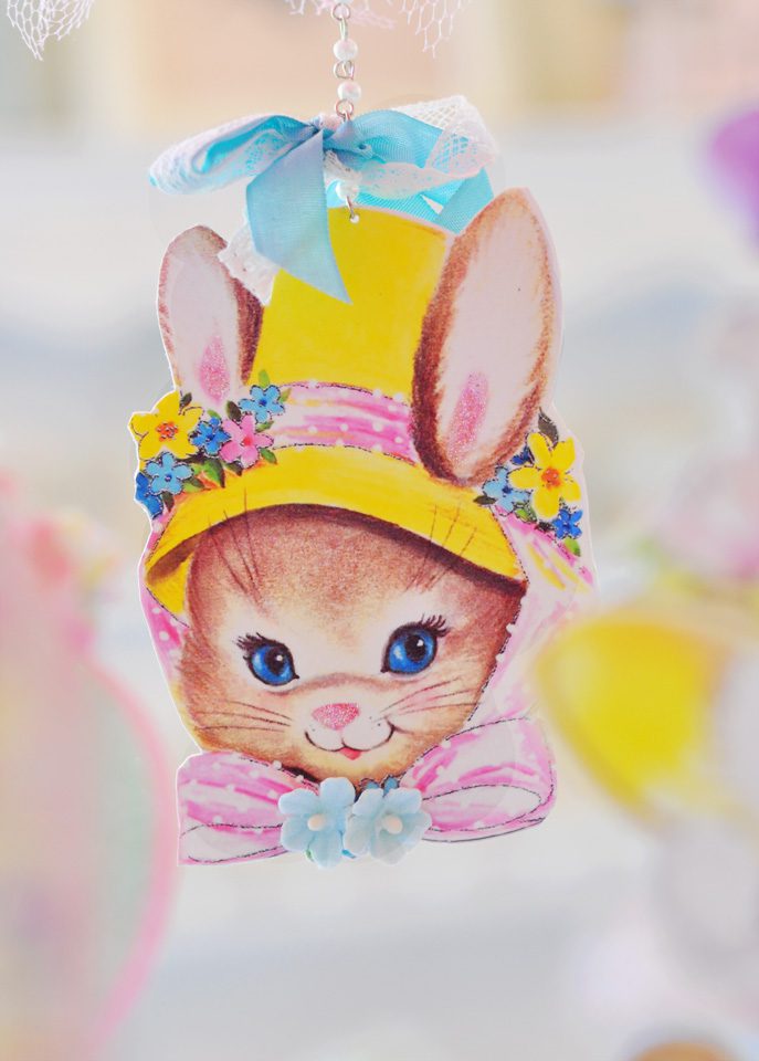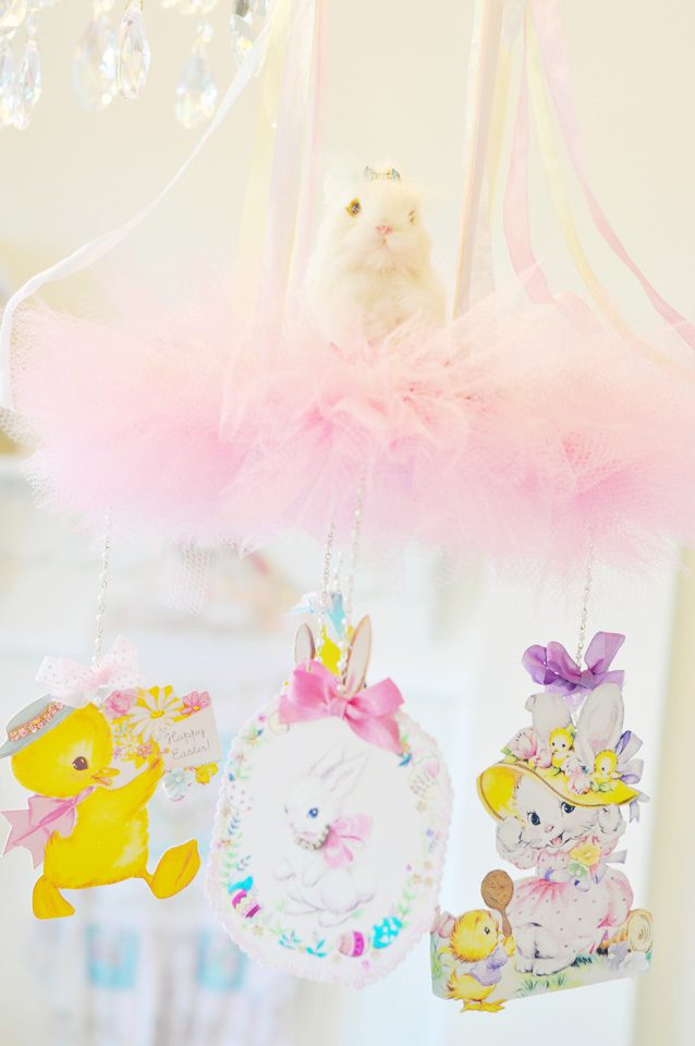 Hi Jenn! I looooove the mobile!! It is sooo beautiful and magical at the same time! I love the millinery and tulle, sigh. And of course the bunny ๐ The bow in he hair is gorgeous too. The vintage Easter images are just so cute, I cant even stand it!! To me, their is nothing more magical than Easter and spring. The tags are soooo cute!! I love both of them. I can see them in Miss Savannah’s nursery ๐