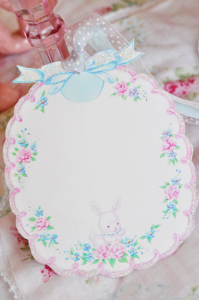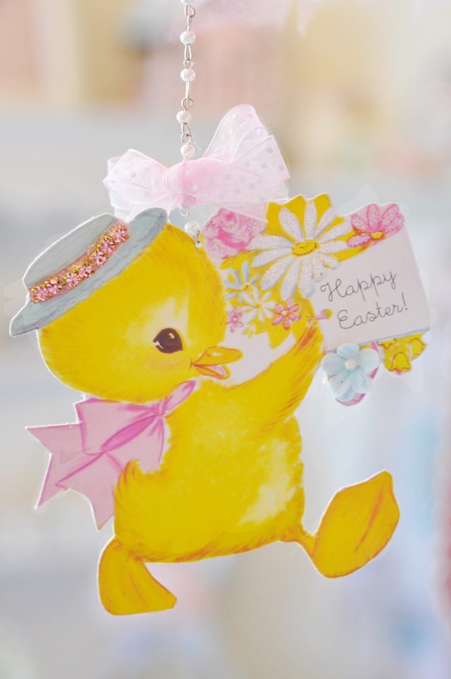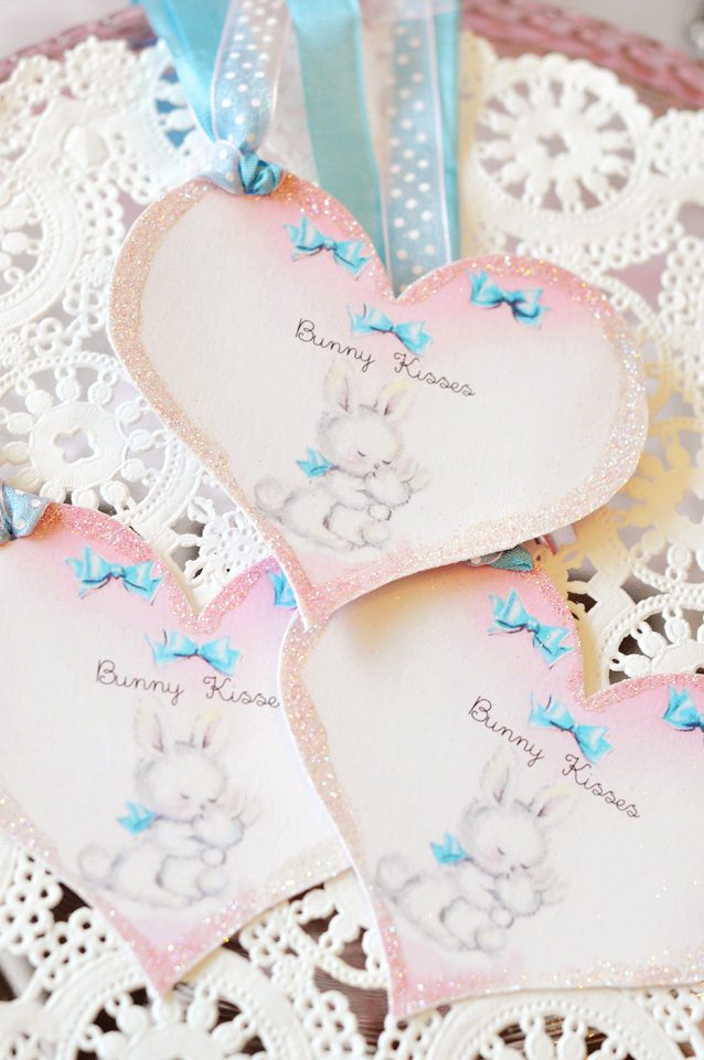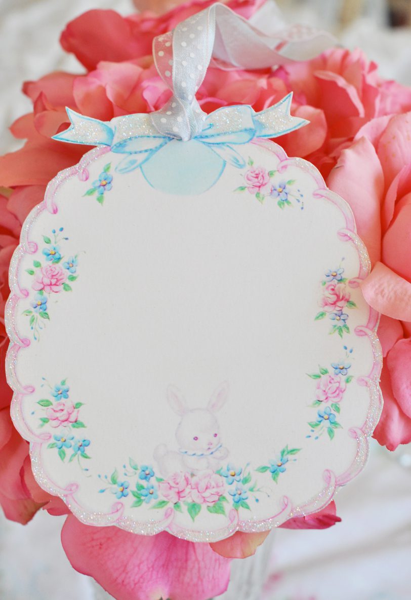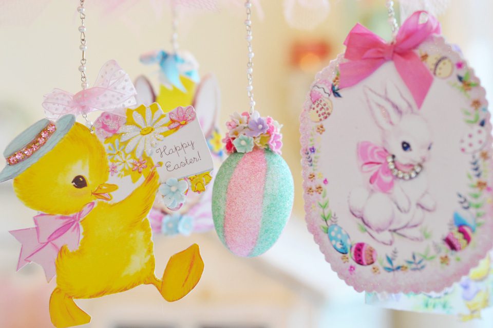 Hi Jenn! I looooove the mobile!! It is sooo beautiful and magical at the same time! I love the millinery and tulle, sigh. And of course the bunny ๐ The bow in he hair is gorgeous too. The vintage Easter images are just so cute, I cant even stand it!! To me, their is nothing more magical than Easter and spring. The tags are soooo cute!! I love both of them. I can see them in Miss Savannah’s nursery ๐