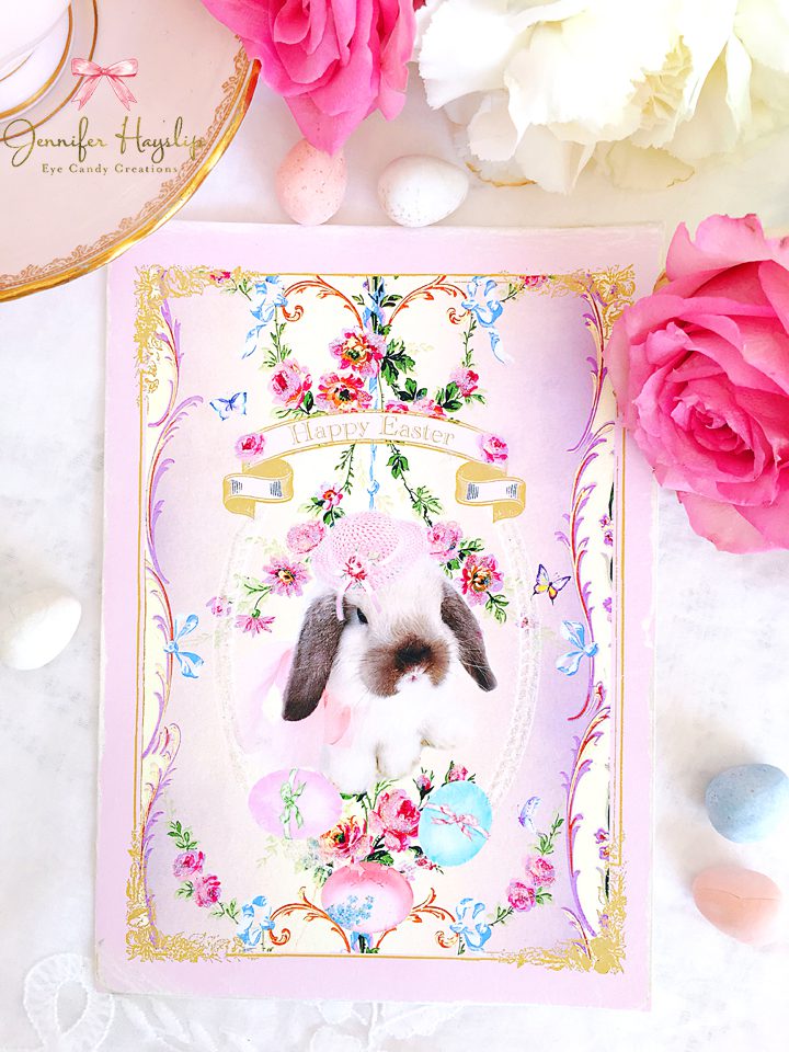 This darling card has my daughter’s bunny, Penelope as the model.