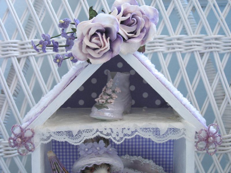 The next shadowbox is in the soft and pretty colors of purple and white and titled "Easter Greetings".