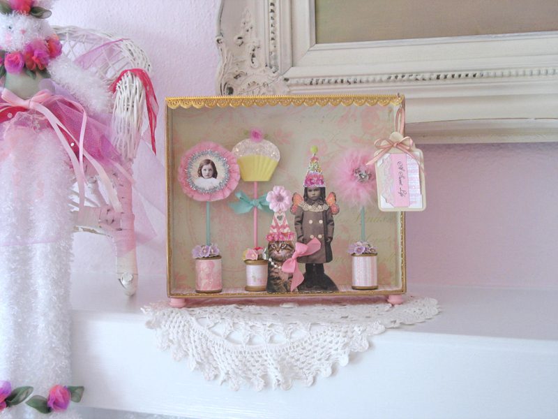This is called "A sweet life" by Lori. This sweet and whimsical creation is displayed on the fireplace mantel.