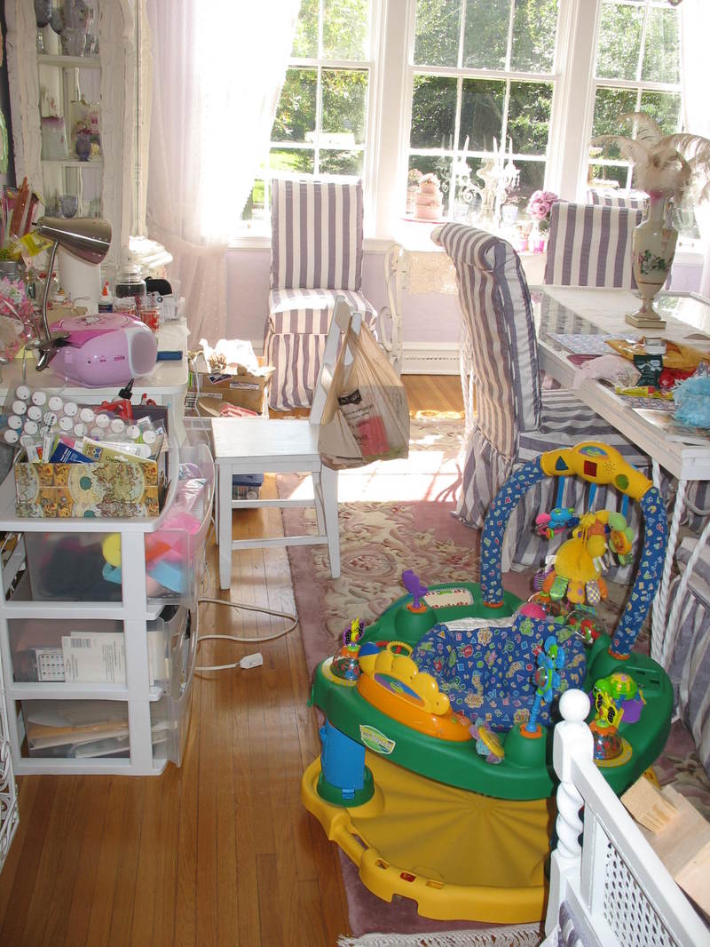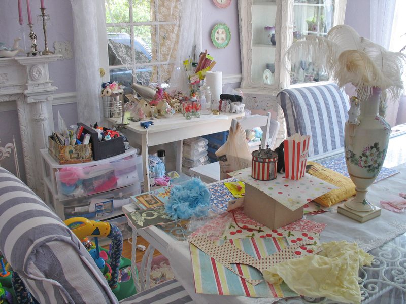 Last BUT not least!!!!! I am truly OVERWHELMED at the comments that soooooo many of you left last week regarding "What I love about my home". I cant THANK YOU all enough for the SUPER KIND comments. They mean the world to me!!! In turn, I thought it would be fun and giggles to show the "REAL" home when it’s not all "fru-fru’d" up for the magazines and camera. My art room is my dining room. Once we adopted Vivian, my little studio became her nursery. So, the only place for my supplies was the dining room. This is what it looks like TODAY. BTW….I am NOT organized! I work in chaos & messes. Things are EVERYWHERE. Dont laugh to hard!!!