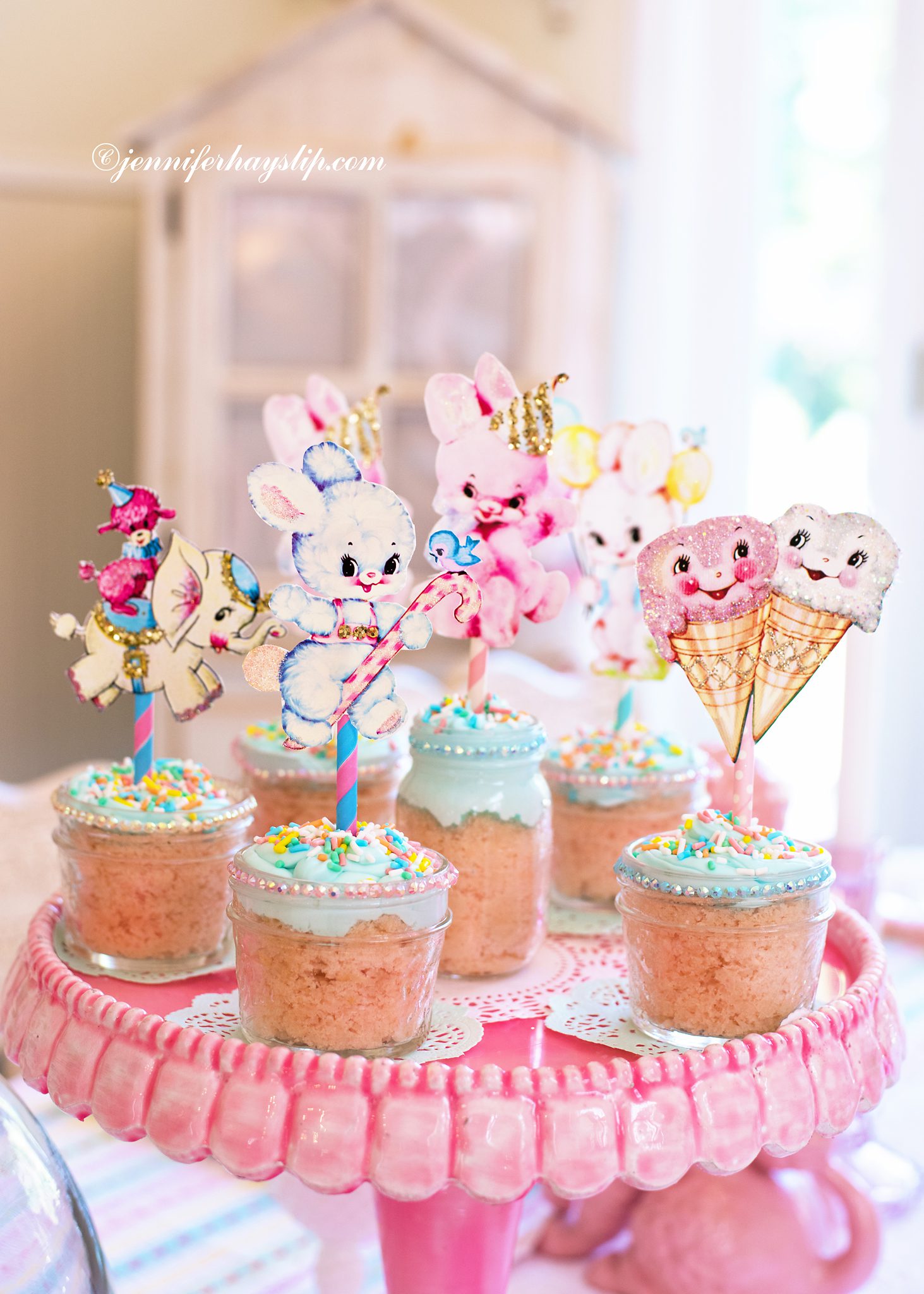 I enjoy crafting and decorating, and thought it would be fun to give these party cupcake jars a bit of old fashioned cuteness.