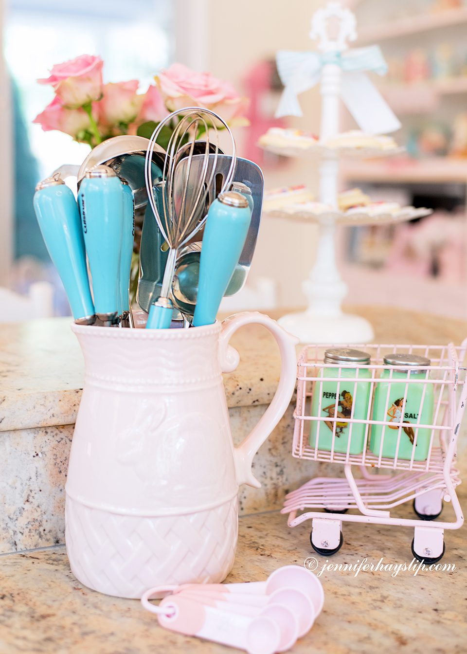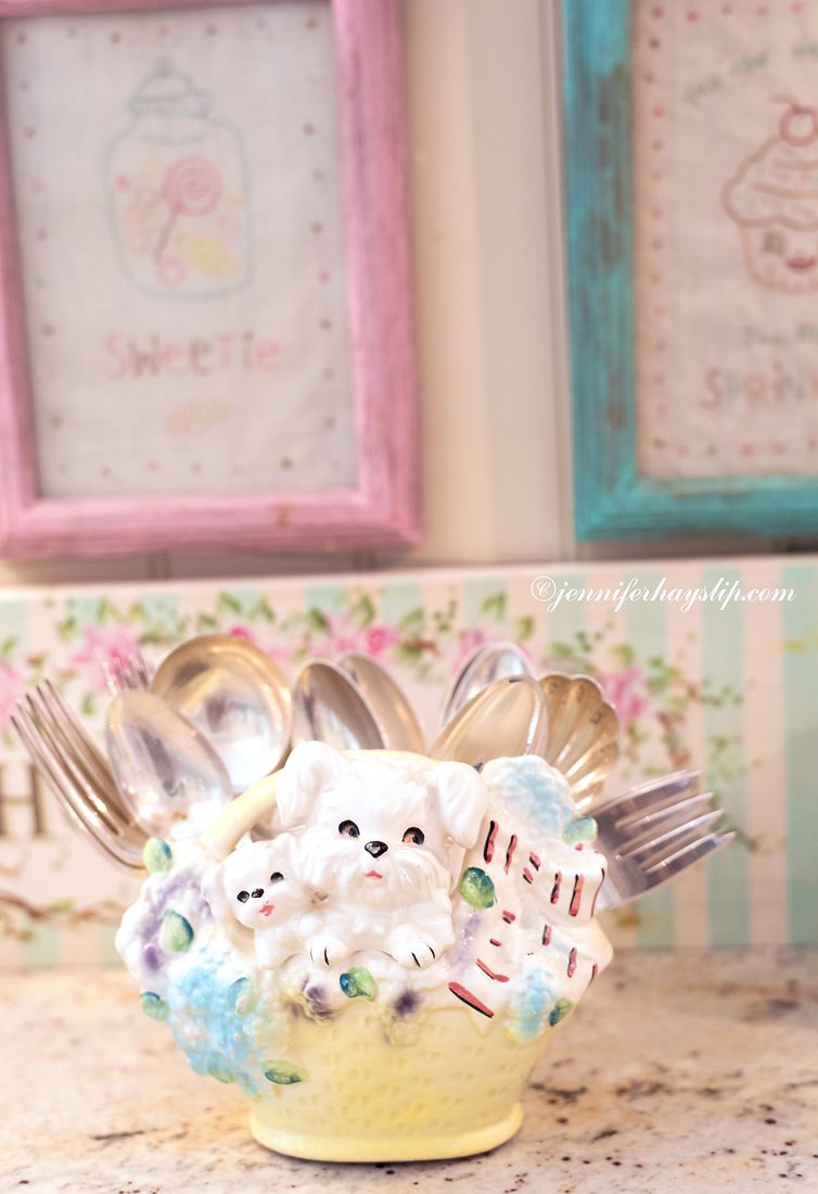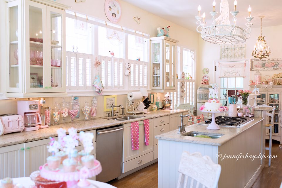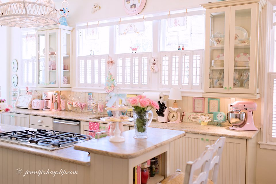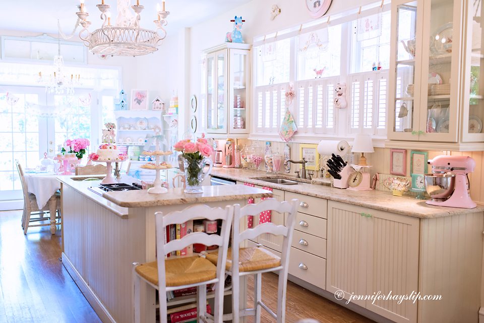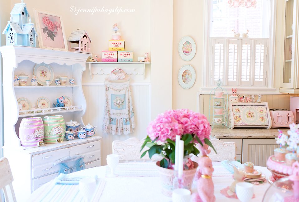 I so enjoyed the tour of your lovely kitchen and seeing pics of you, Vivi, & Coco! I was born in 1953….The gorgeous things you collect were au rigueur when I was a kid growing up! Your kitchen is my dream kitchen! I love not only the “things” but their dreamy COLORS, as well! Where do you find the candies that are in your pretty apothecary jars? Congrats to you on this intriguing feature in Where Women Cook! Hugs from Alabama! :)~