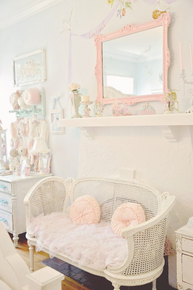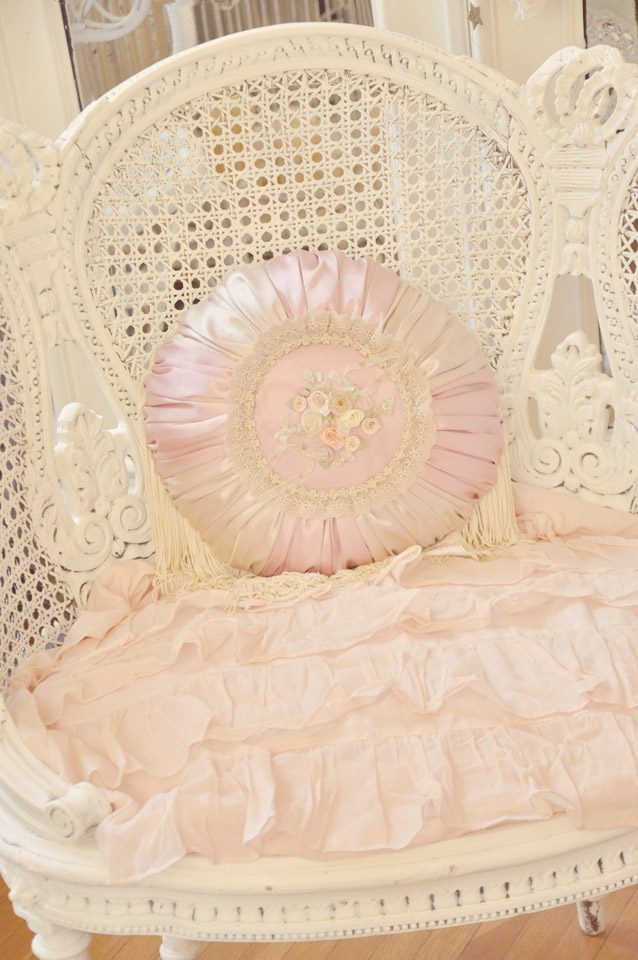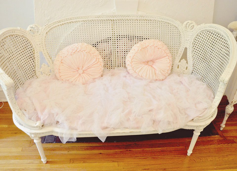 Believe it or not…I coverd the setee with a light pink lacy ruffled shower curtain I purchased from Urban Barn.