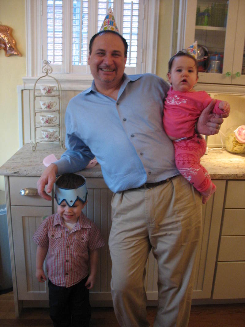 YEAH!!! Daddy is home!!!! Look at this MOTLEY crew???? My hubby looks goofy, Grant (wearing his crown upside down) isnt even looking at the camera, and it’s a miracle that Vivian has pulled off her party hat yet.