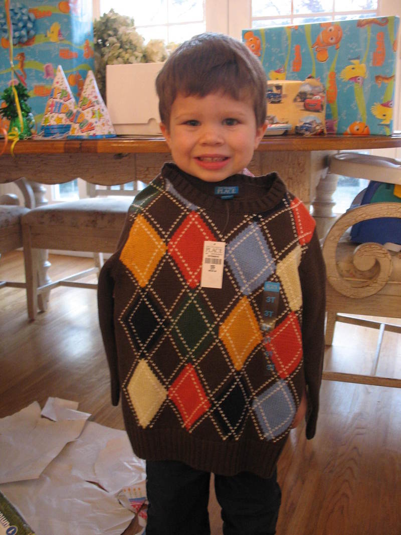 Love the sweater Grandma! He’s thinking "NEXT gift!" hee! hee!