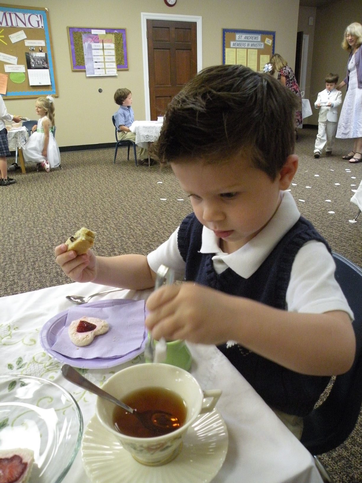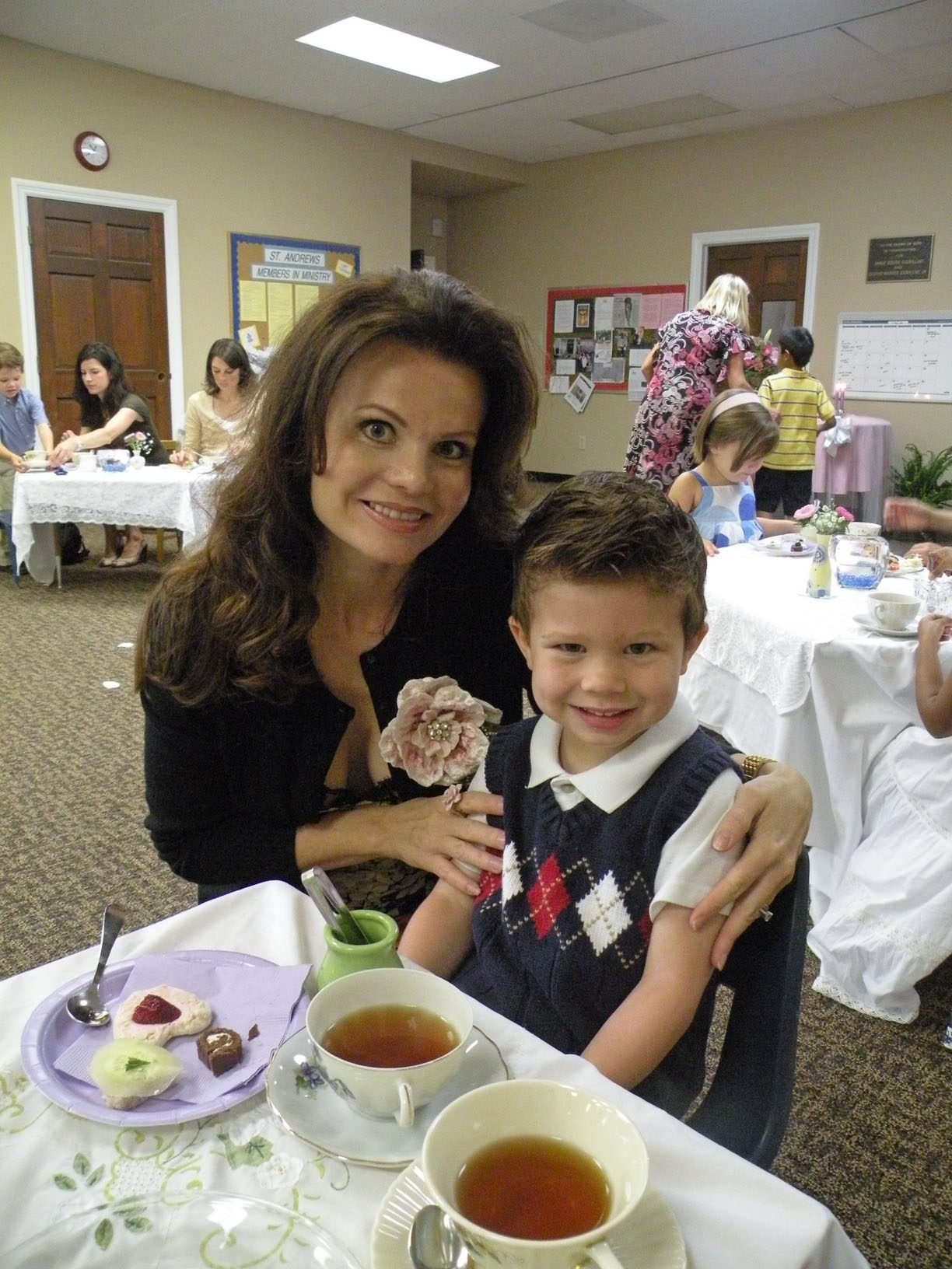 This week at my children's preschool both Vivian and Grants classes had Mother's Day tea parties. All the Mommies and children dress up in their "Sunday best" and we sipped tea and ate little sandwiches and cookies.