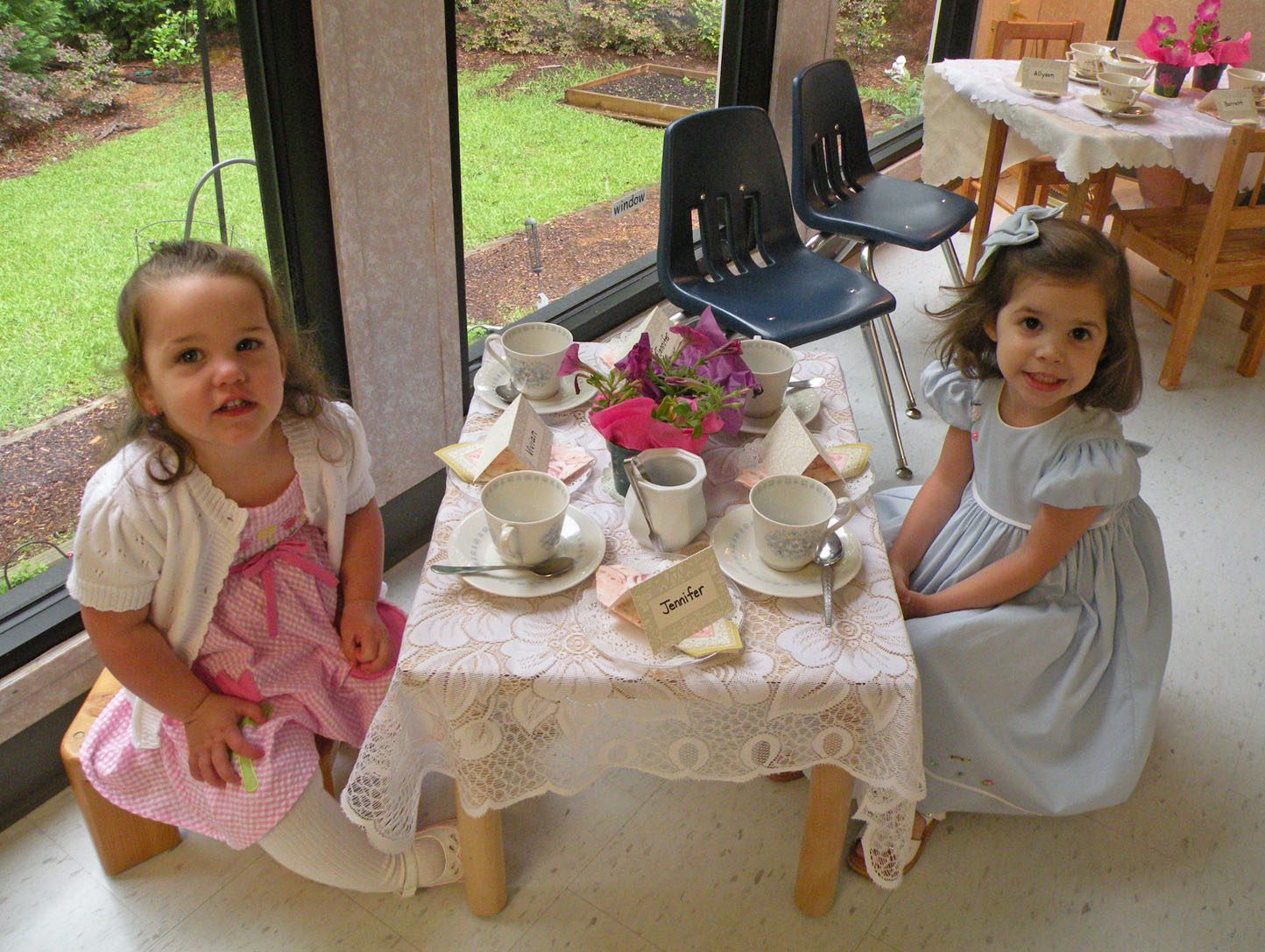 I loved the tea parties with your little babies. The children are lovely just like their mama. OH! and congratulations on your 100th post!