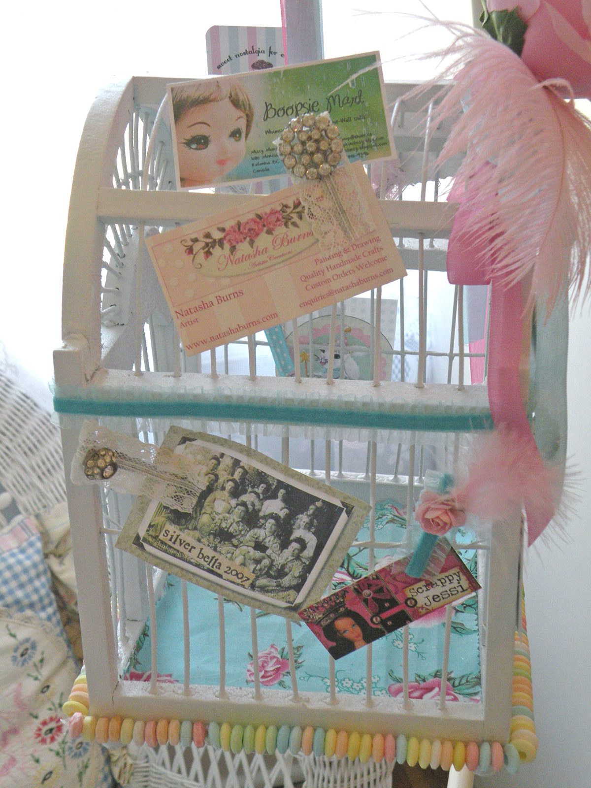 Hi Jenn!! I adore the over-top-cute birdcage and beautiful and sweet candle holders youi created!!! Everything you create is so fun and pretty and happy!! I adore the Debrina Pratt piece you have- I LOVE her work and I LOVE yours, too!!