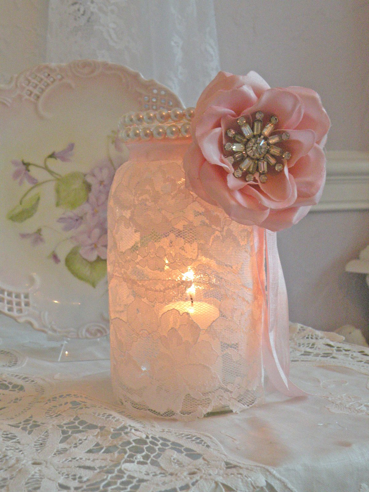 Jenn, your blog is so much fun to visit. I love the lace jars and I have a zillion yards of lace every size and color from my moms with ribbon to match.